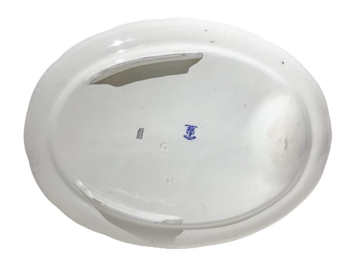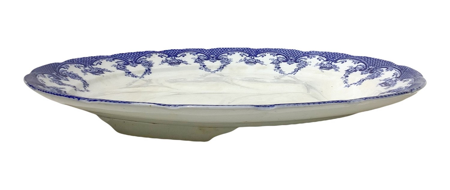 Piatto ovale in porcellana con decori blu ai bordi. Lievi macchie Porcellana 50x39 cm