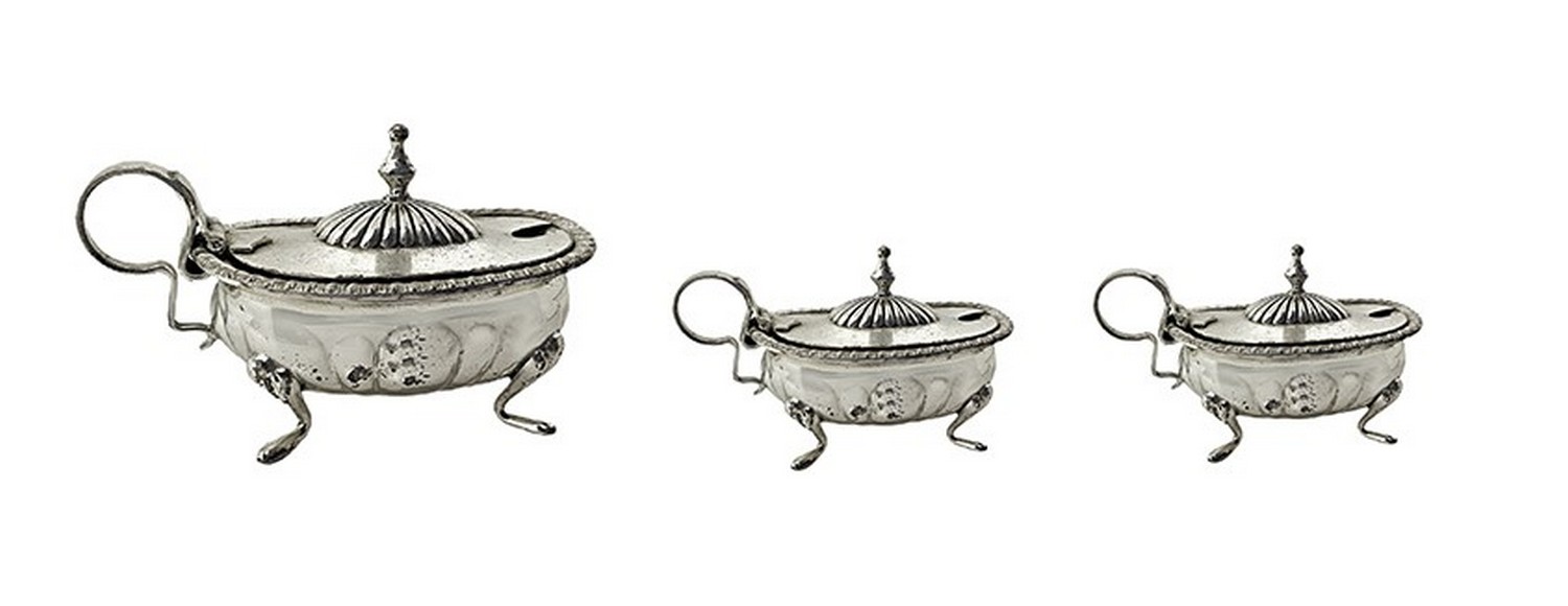 Portaformaggio, sale e pepe in argento '800. Peso complessivo 370 g