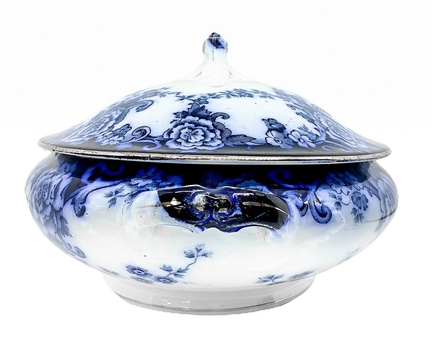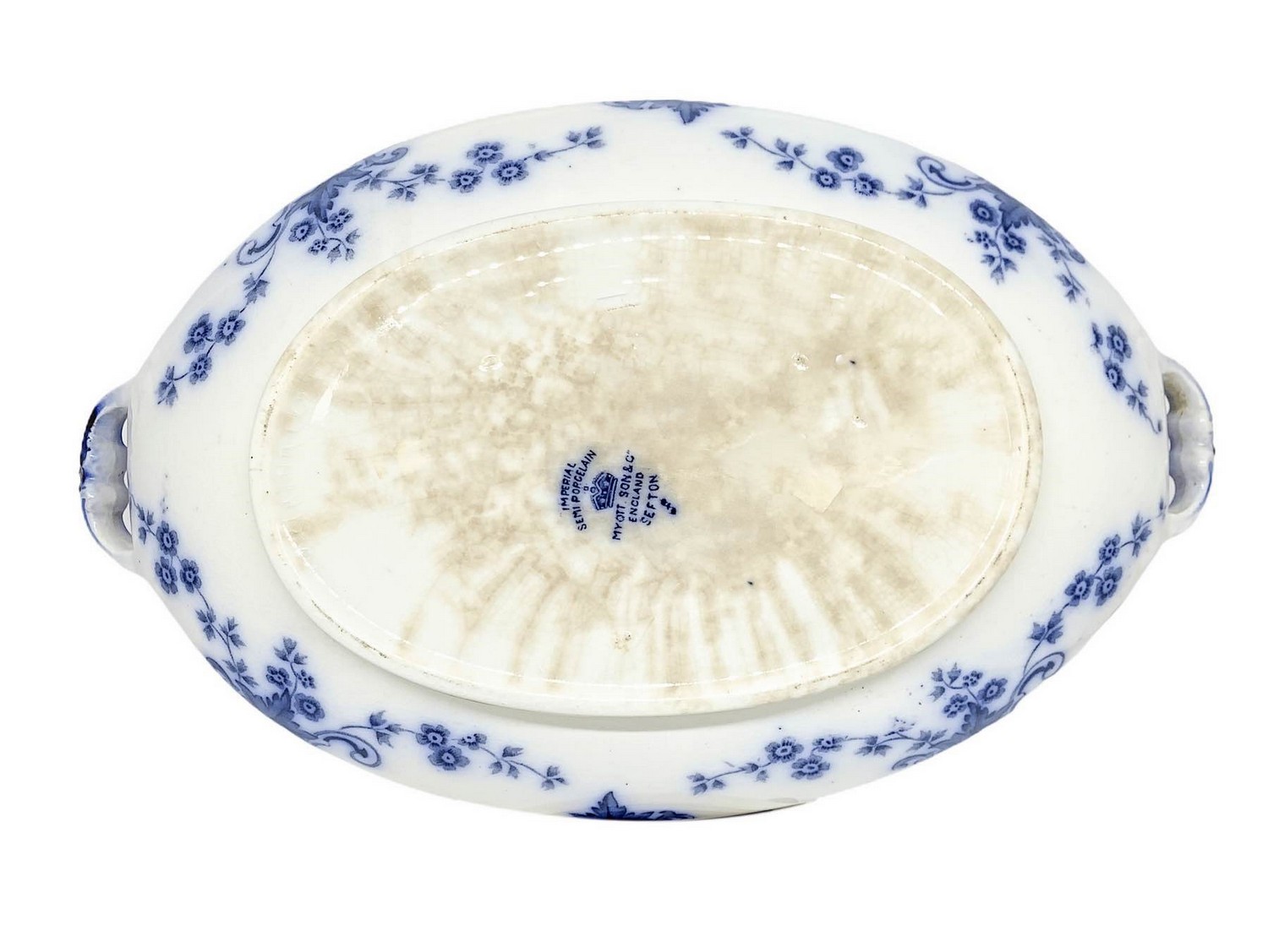 Portadolci in porcellana blu a fiori, marchio Myott Son&Co England. XX secolo