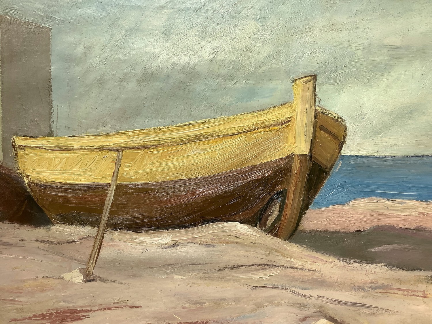 Barche a secco. Firmato Sando Dipinto ad olio 65x70 cm, in cornice cm 89x74