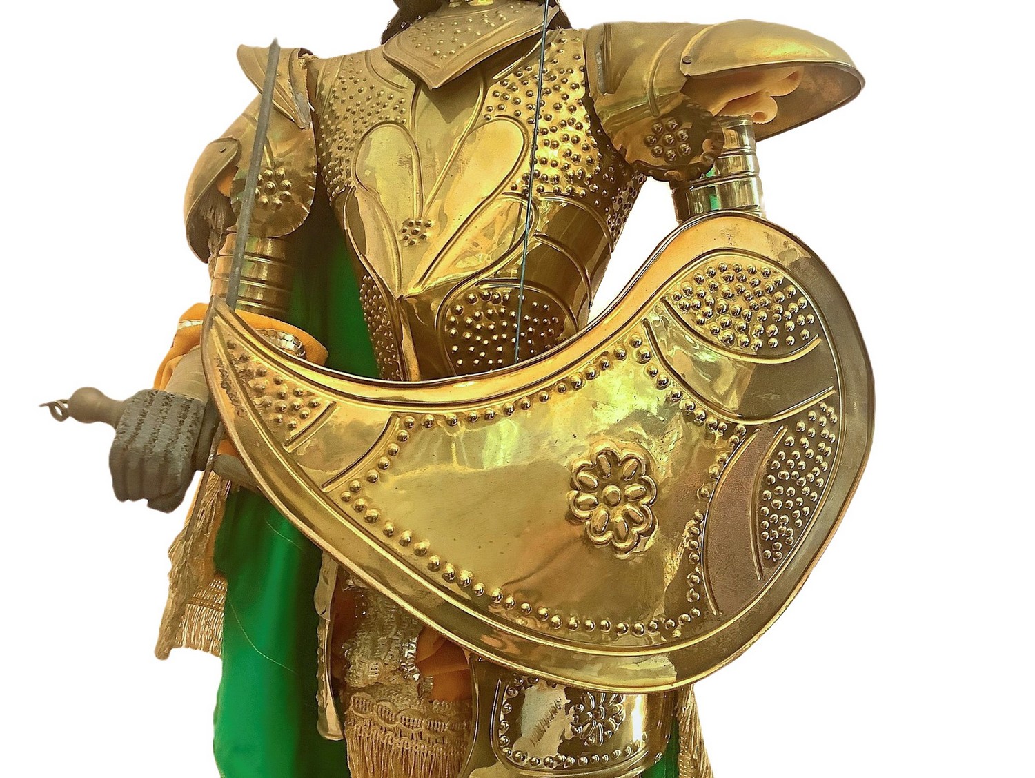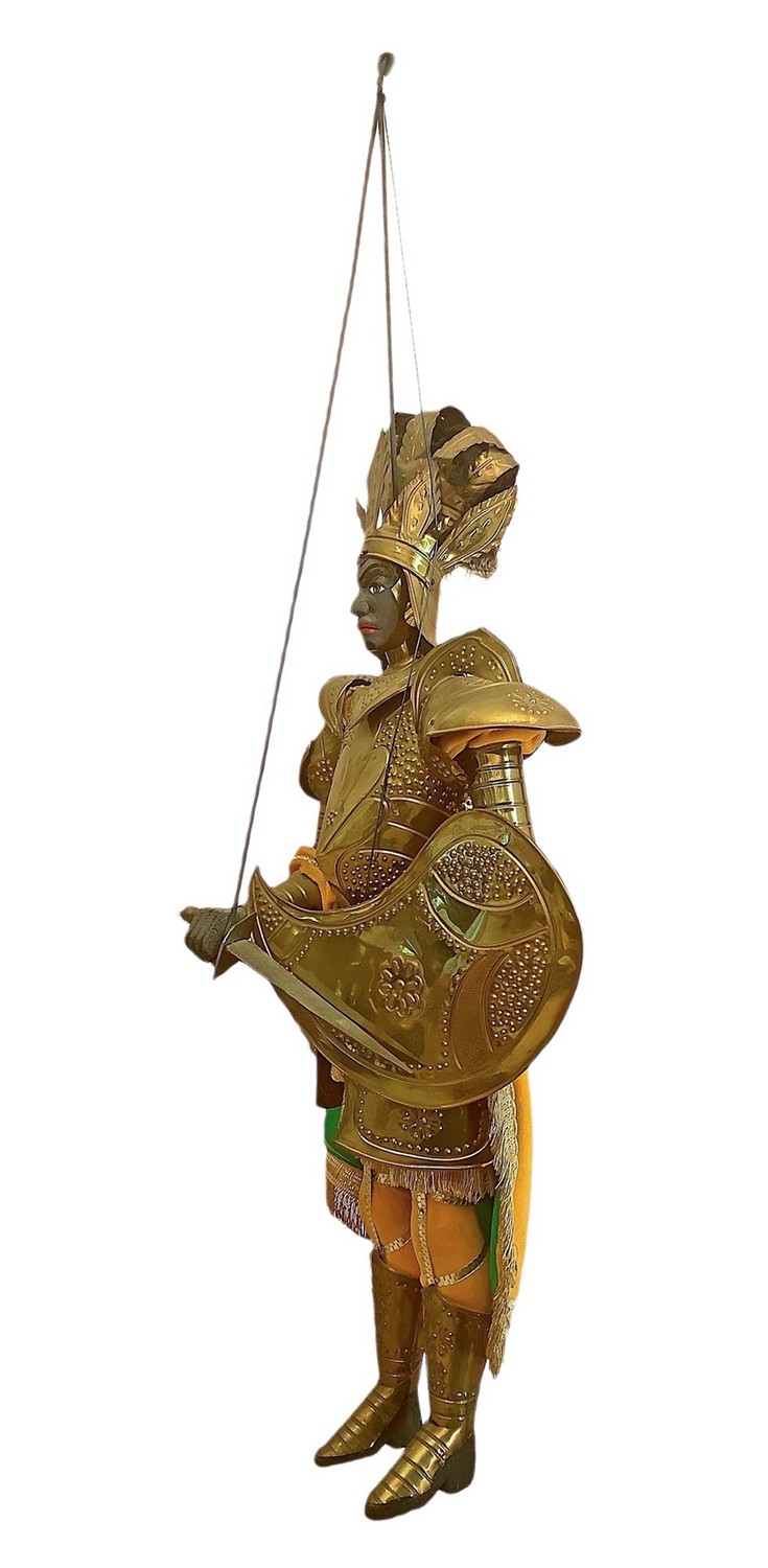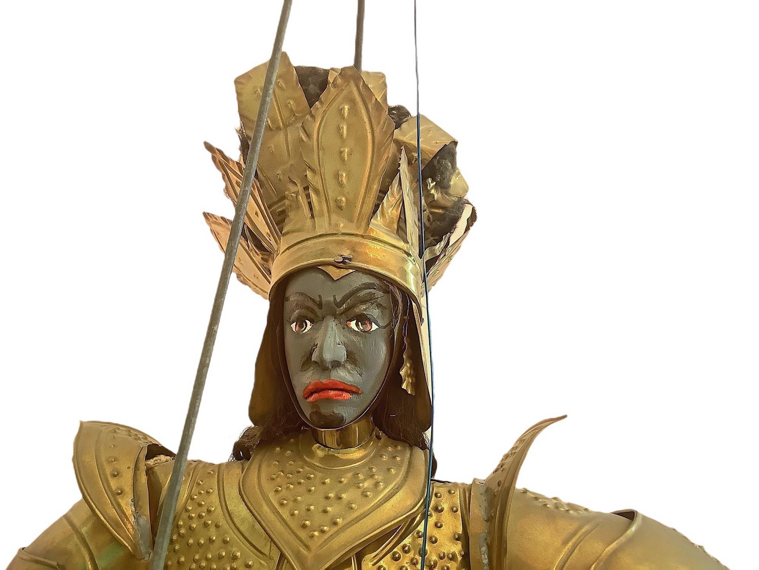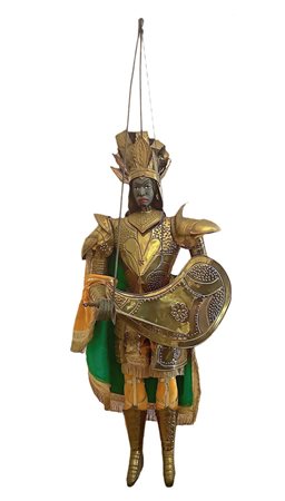 Opera artigianale di uno dei più grandi pupari siciliani, Salvatore Faro, “u Lumaru” (Catania, 1921-1970). Impresario che gestì il proprio Teatro di Via Carlo Forlanini a Catania nel quale, durante gli spettacoli, svolgeva anche il ruolo di Parraturi e di Maniante dei pupi. Disegnava e dipingeva i Cartelloni per gli spettacoli serali e costruiva i relativi “pupi” da “Combattimento” e da “Mini-combattimento”. E’ ricordato come celebre maestro di una stirpe di Pupari.