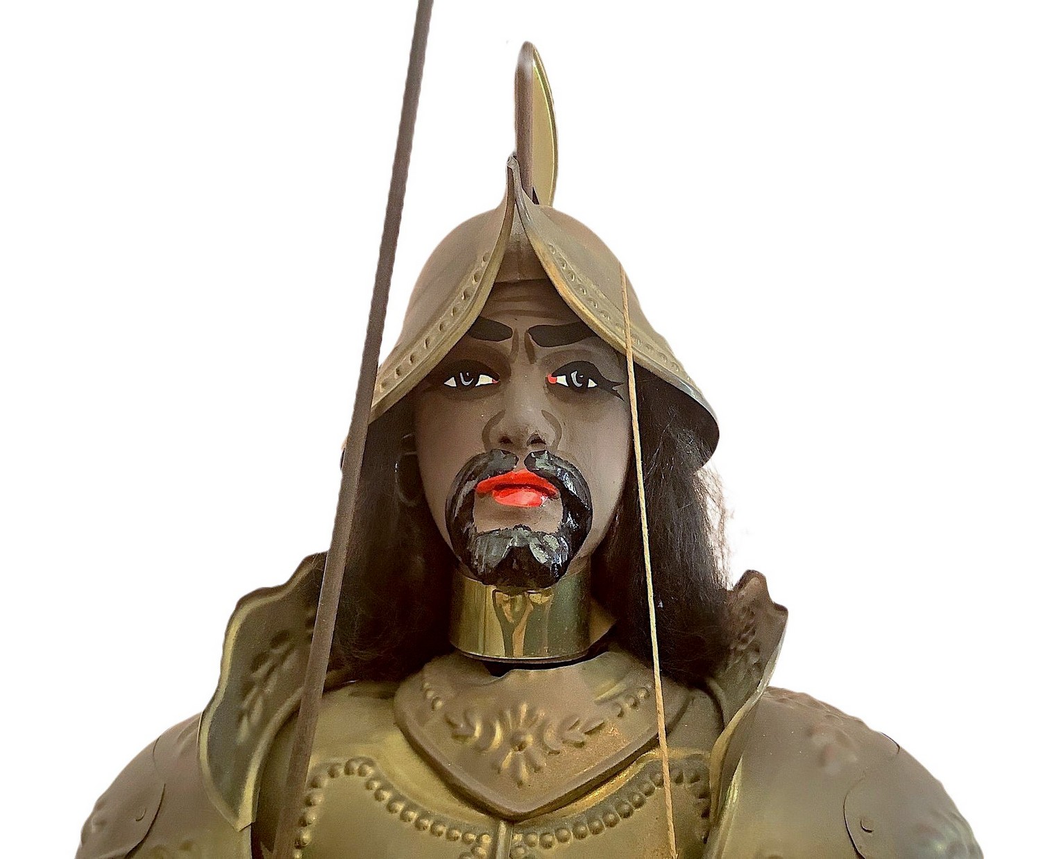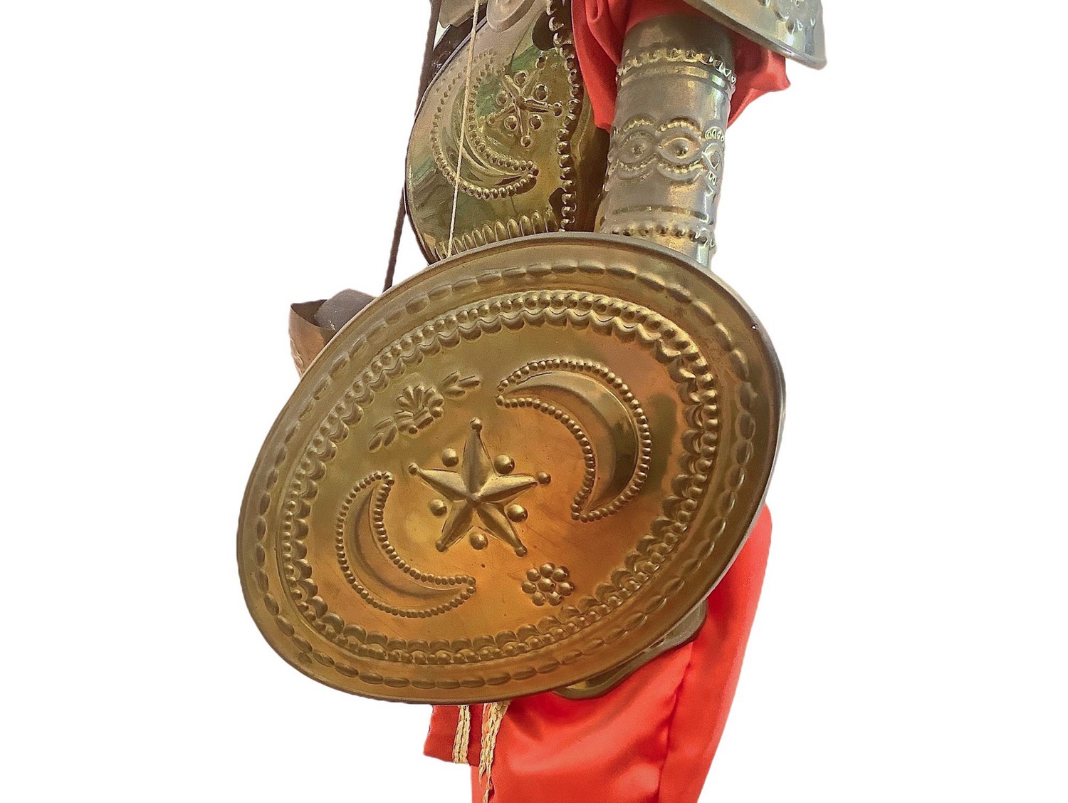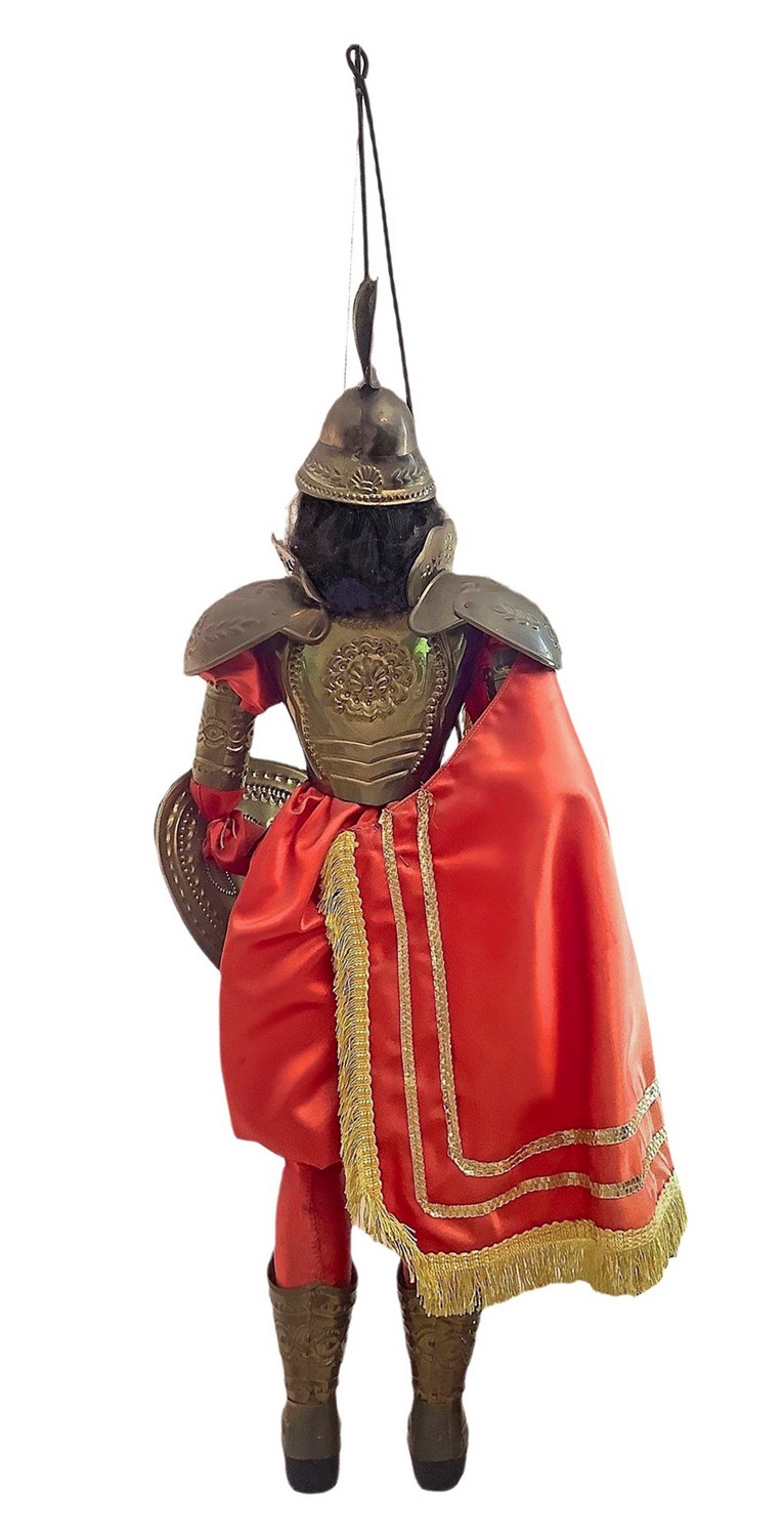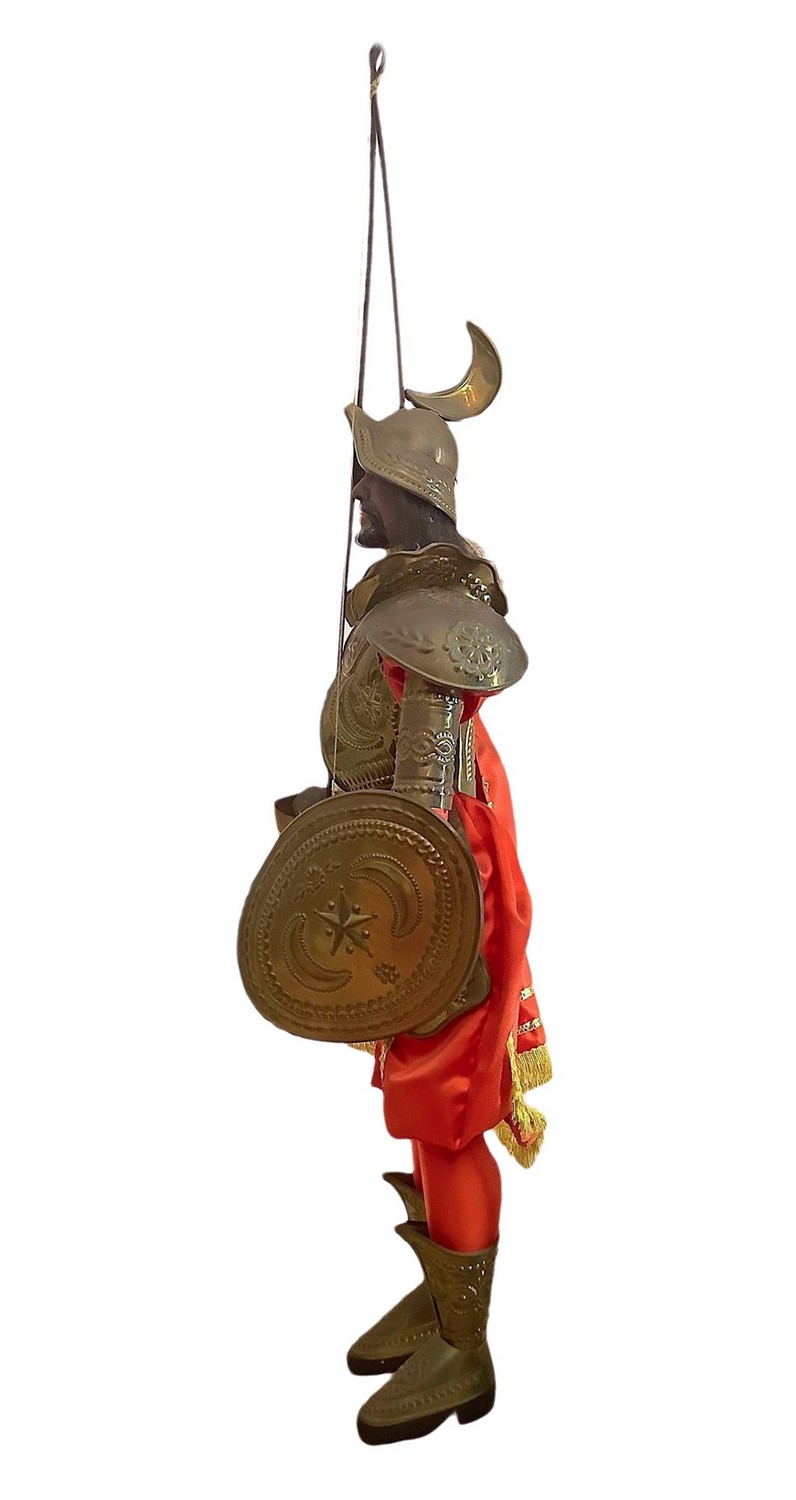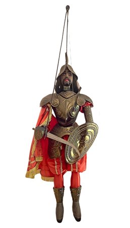 Opera artigianale di uno dei più grandi pupari siciliani, Salvatore Faro, “u Lumaru” (Catania, 1921-1970). Impresario che gestì il proprio Teatro di Via Carlo Forlanini a Catania nel quale, durante gli spettacoli, svolgeva anche il ruolo di Parraturi e di Maniante dei pupi. Disegnava e dipingeva i Cartelloni per gli spettacoli serali e costruiva i relativi “pupi” da “Combattimento” e da “Mini-combattimento”. E’ ricordato come celebre maestro di una stirpe di Pupari.