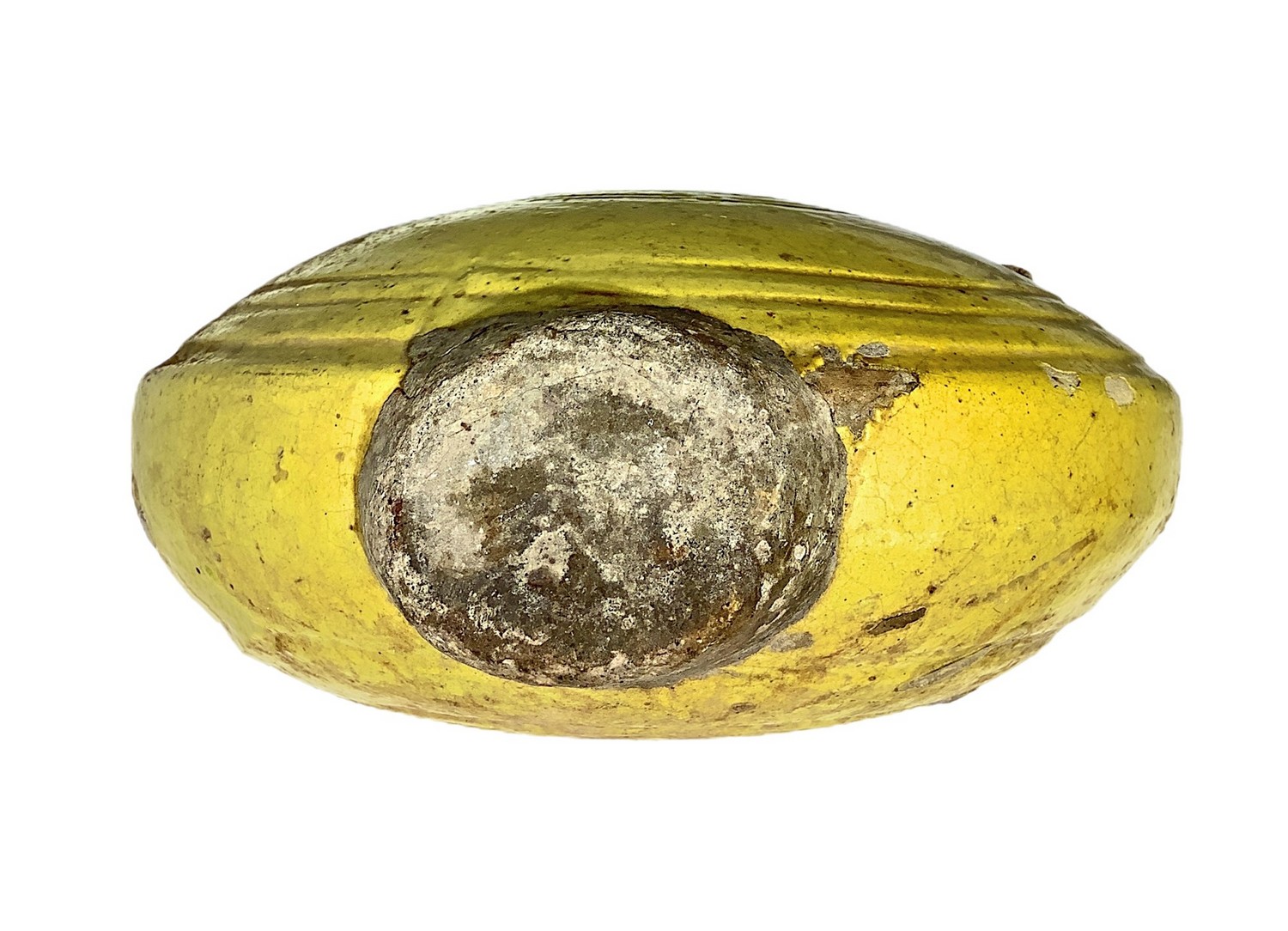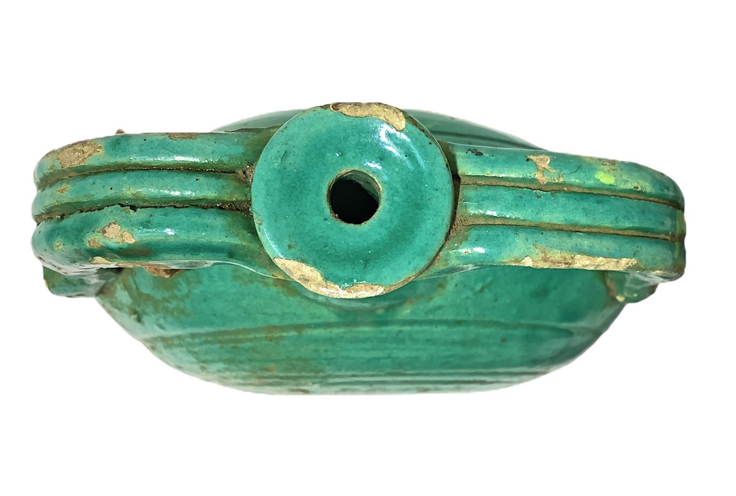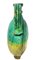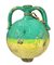 Boraccia biansata in maiolica, Calabria.. Nei toni del verde e del giallo. Cm 22 XX secolo.