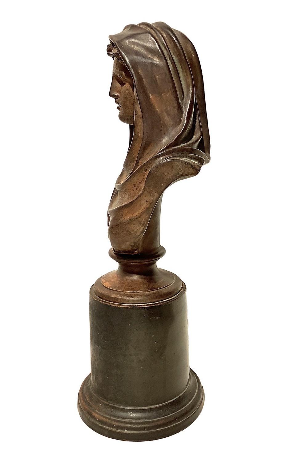 Vestale. Su mezza colonna. Marchio sul retro R. U. 1868 Terracotta 42x18 cm