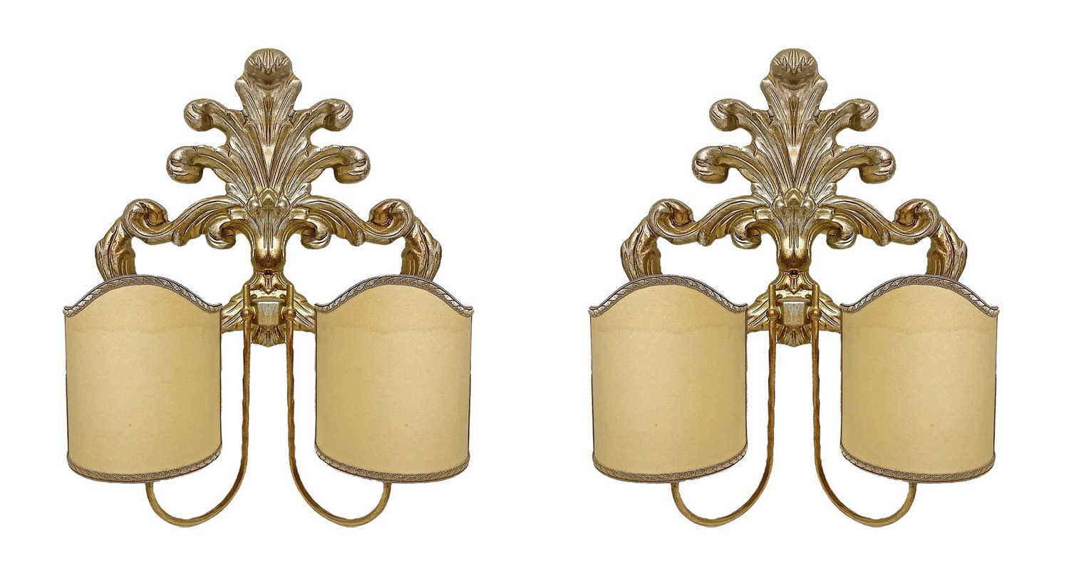 Coppia di applique in legno dorato