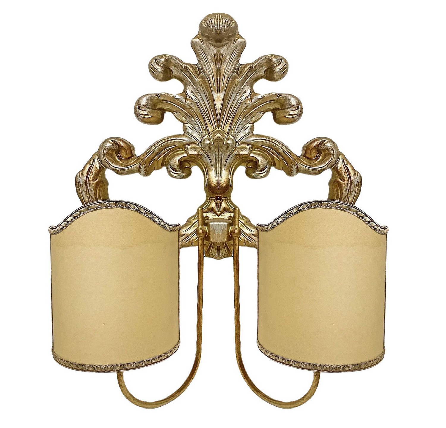 Coppia di applique in legno dorato. A due luci , braccetti in metallo H 50x39 XX secolo