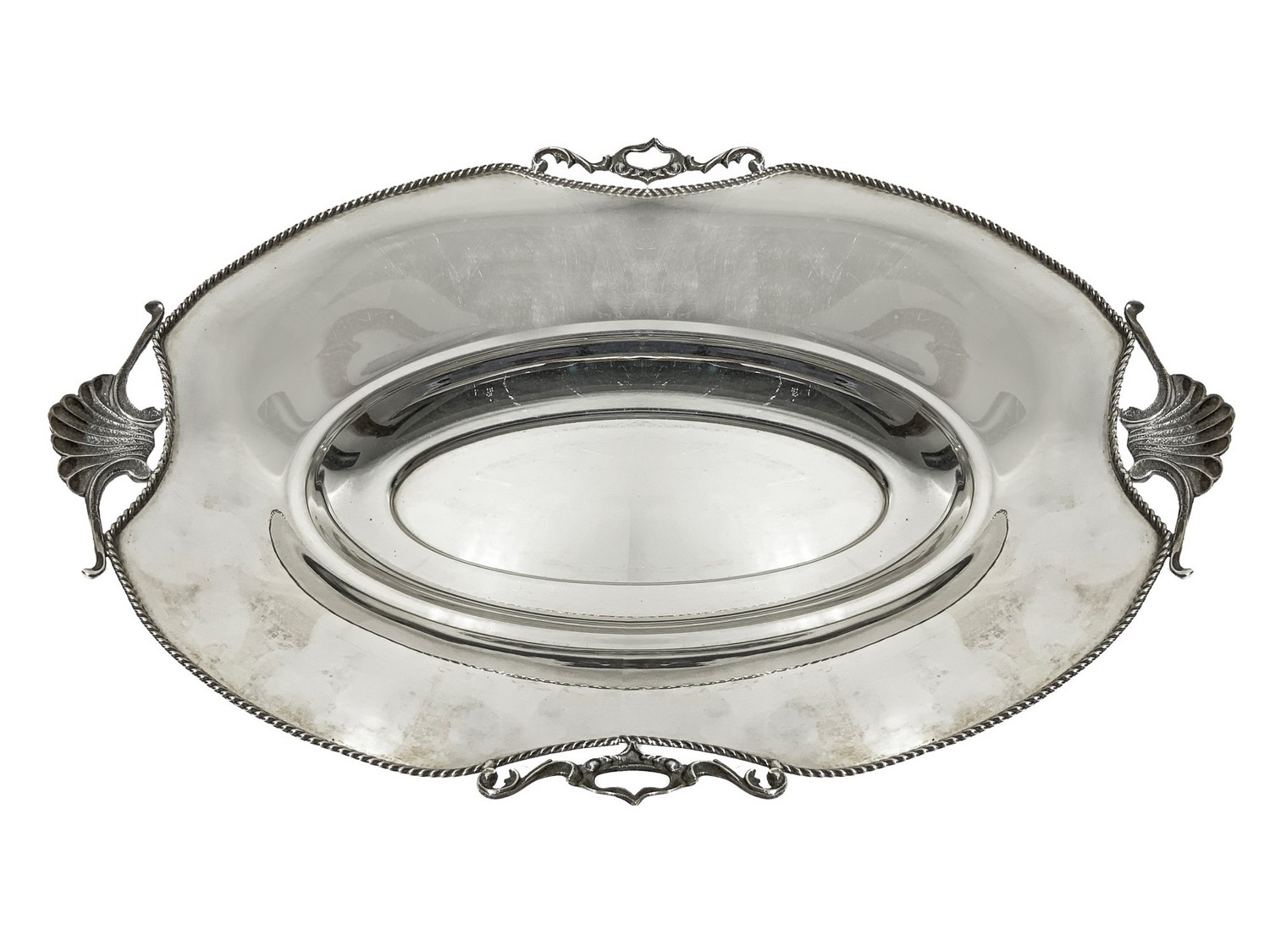 Ciatta centro tavola. in argento. H cm.8, larghezza cm 40x27. Gr.630 H cm.8, larghezza cm 40x27. Gr.630