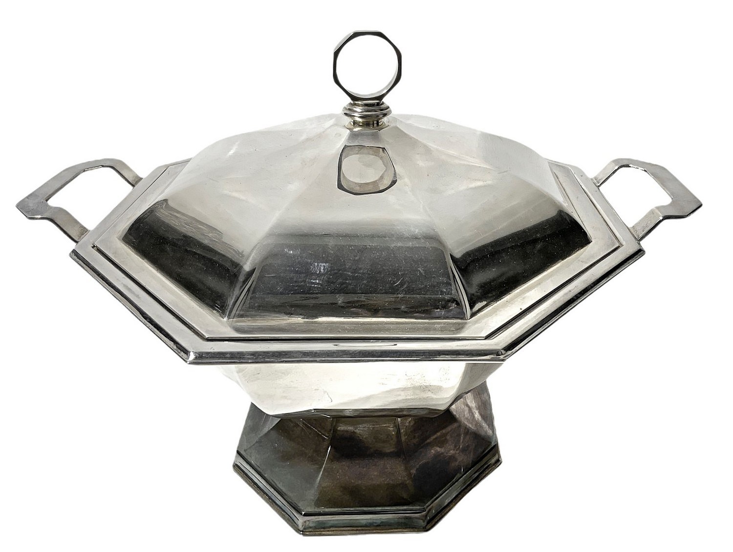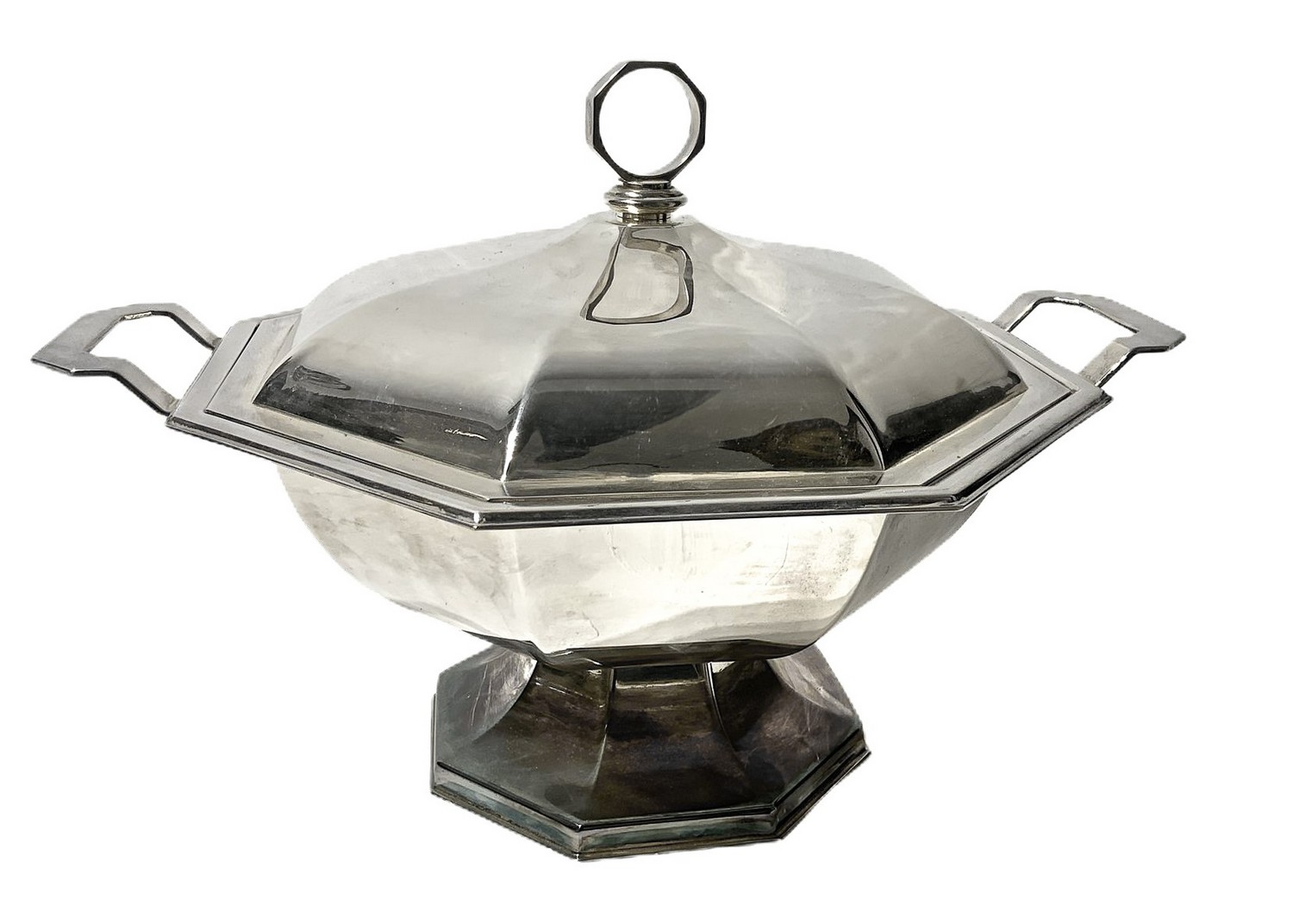 Zuppiera in sheffield, Silver plate, Petruzzi & Branca.. H cm 23, diametro 42