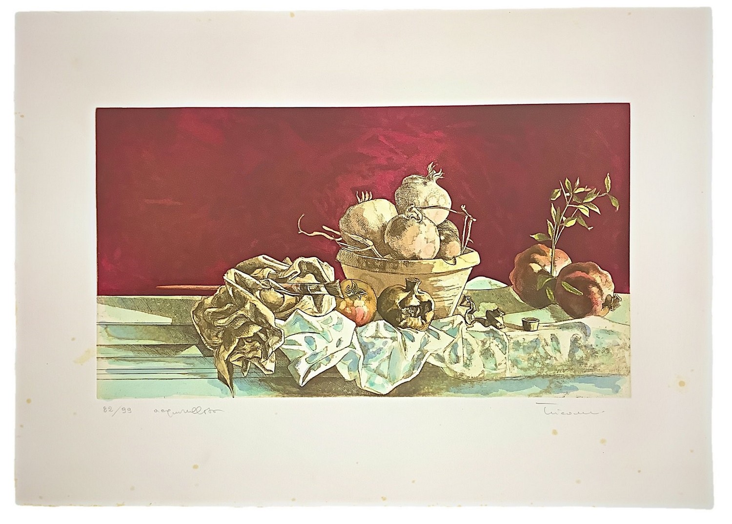 Natura Morta. Opera grafica 50x70 cm Saro Tricomi Catania 1937