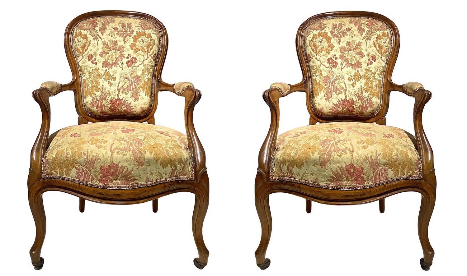 Coppia di poltrone in legno di ulivo. Spalliera h 100 cm, seduta h 50 cm, larghezza 60 cm XIX secolo