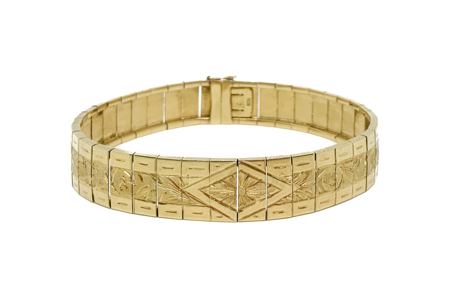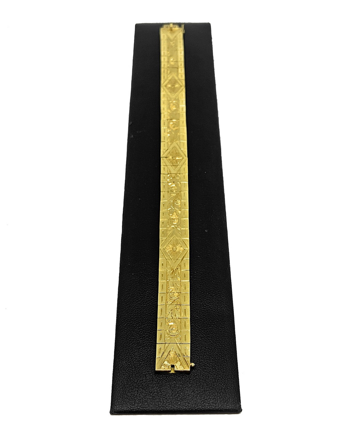 Precedente Lotto 549 Successivo Art La Rosa Casa d'Aste - Viale Africa 12, 95129 CATANIA Asta di Antiquariato e Dipinti Antichi Asta di Antiquariato e Dipinti Antichi sabato 9 ottobre 2021 ore 16:30 (UTC +01:00) Bracciale in oro Bracciale in oro