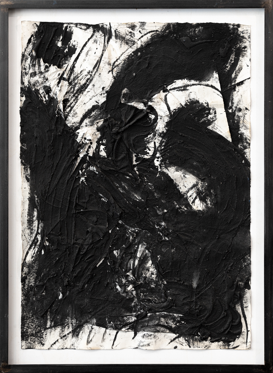 Tecnica mista e terre vulcaniche su carta operata entro cornice in acciaio