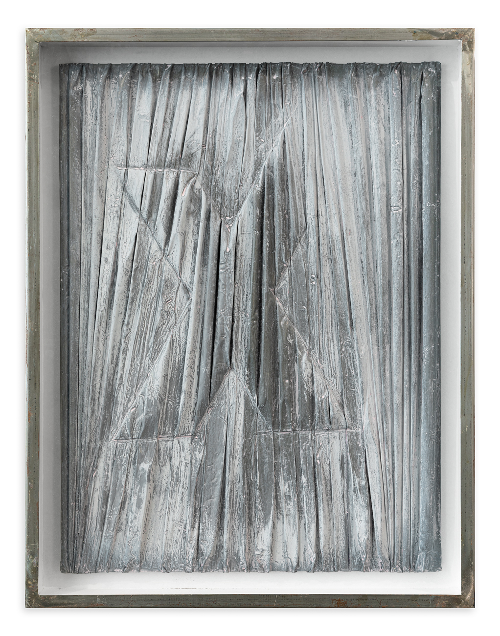 Vinilico e sabbia su lamina di piombo su tavola