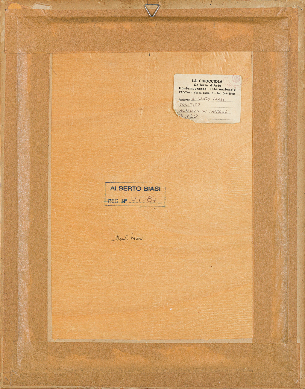 Firma e timbro dell'Artista con numero di registrazione presso l'Archivio Alberto Biasi al retro