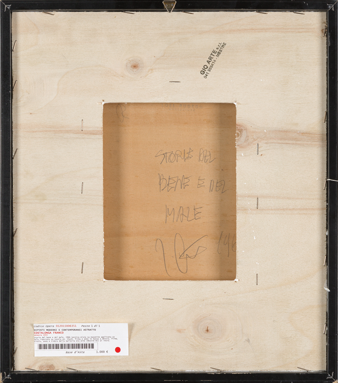 Timbro della Collezione Loel Rudegh e della Galleria Gio' Arte (VE) al retro