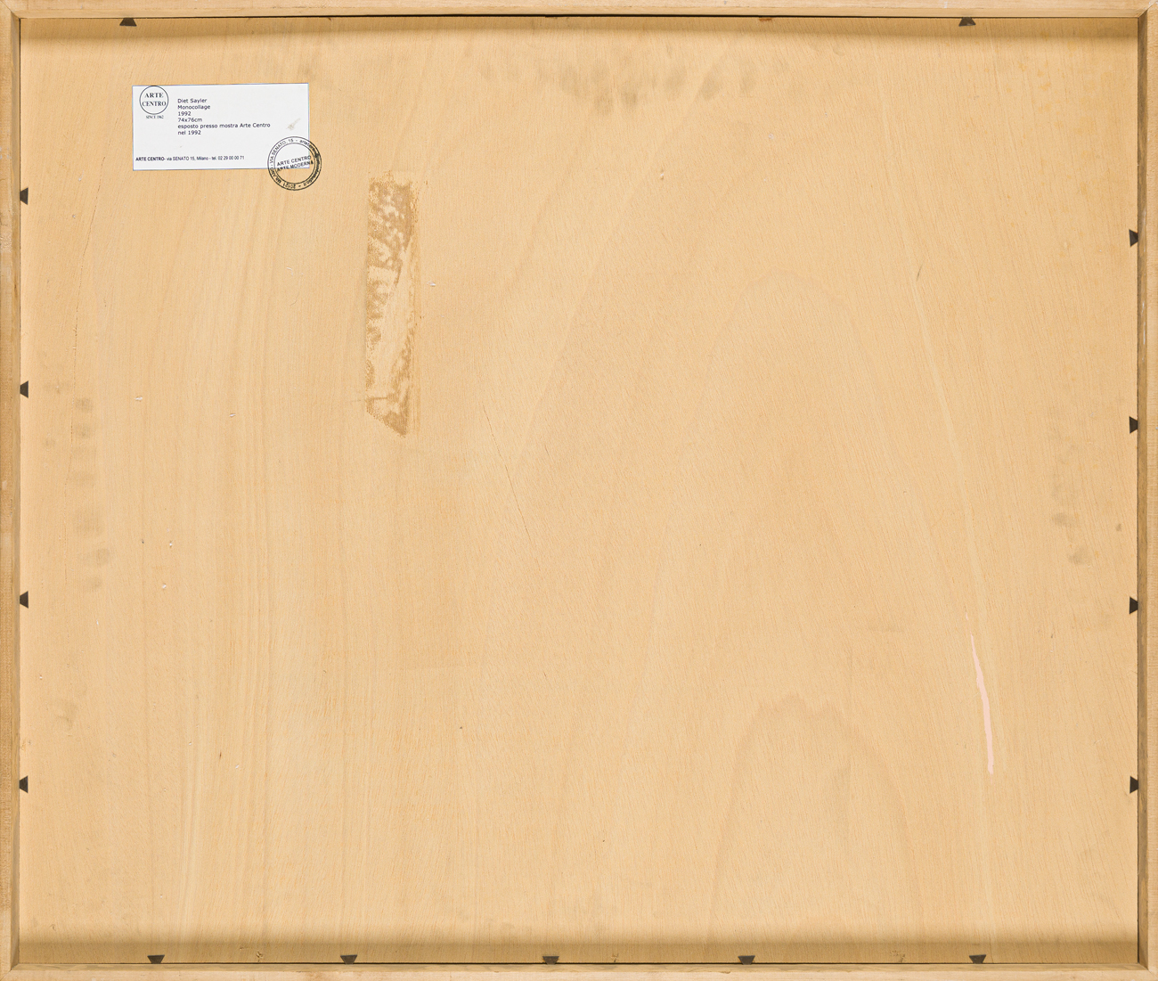 Etichetta e timbro della Galleria Arte Centro (MI) al retro della tavola protettiva