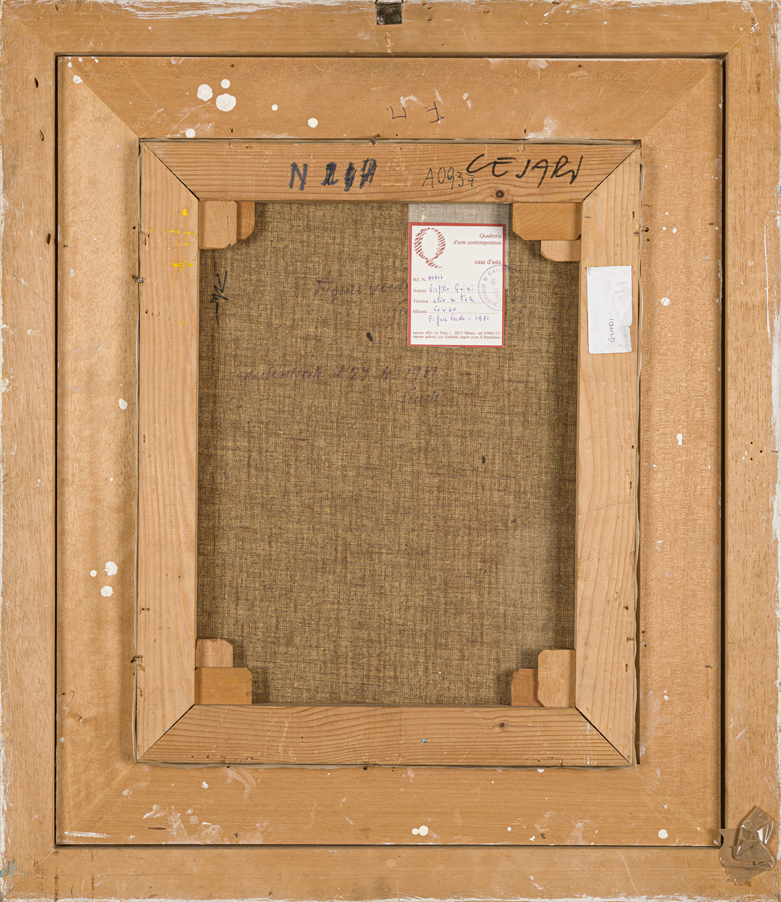 Etichetta della Quadreria d'Arte Contemporanea (MI) al retro