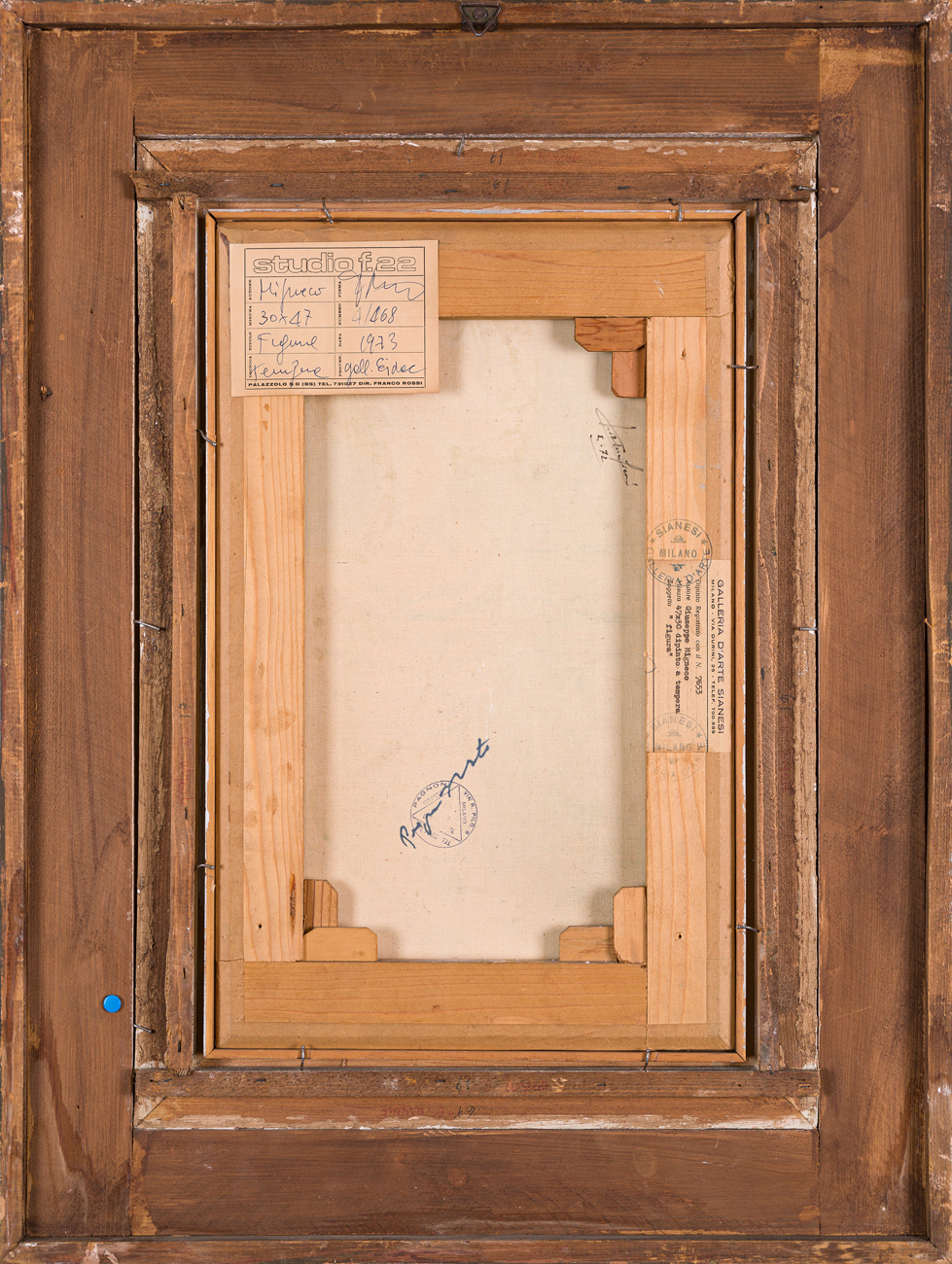 Etichetta e timbri della Galleria d'Arte Sianesi (MI) al retro