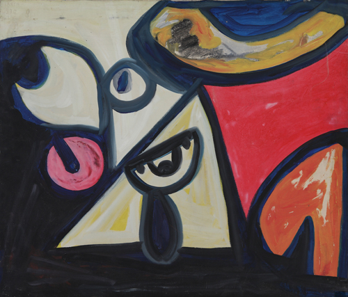 Sebastiano Carta (1913-1973). Fruttiera e tappezzeria,’70. Olio su tela, firma e data in alto a sinistra. Sul retro titolo, data e firma dell’opera. cm60x70.