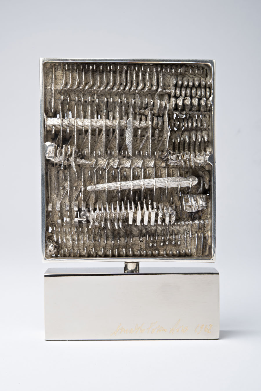 Arnaldo Pomodoro , Marciano Di Romagna 1926 , "Senza titolo" 1962 scultura in argento, h cm 12,5 L'opera è accompagnata da certificato di autenticità su fotografia rilasciato dall Archivio Arnaldo Pomodoro con il n 209f