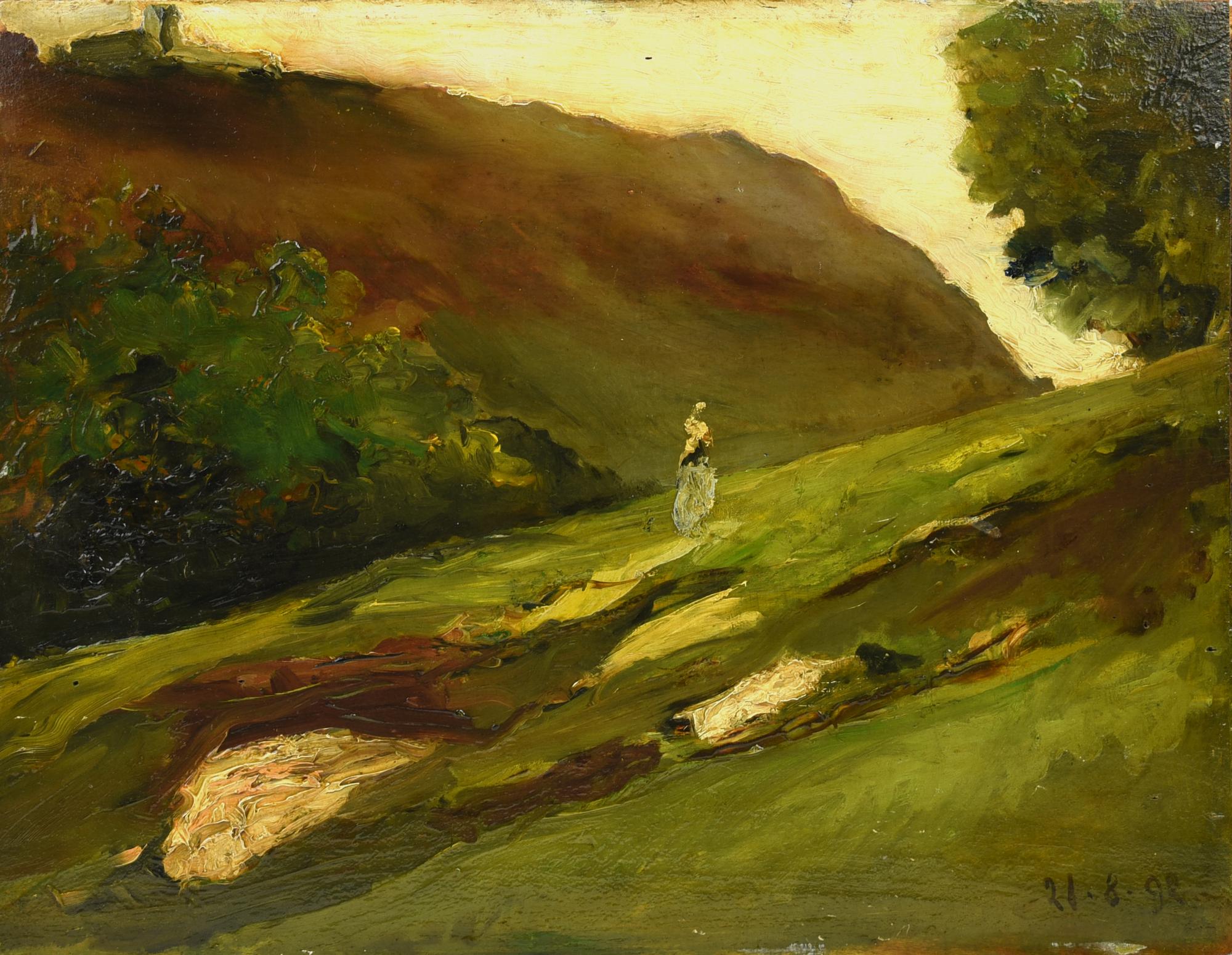 Lorenzo Delleani PAESAGGIO olio su tavola, cm 30x40,5 data eseguito nel 1892...