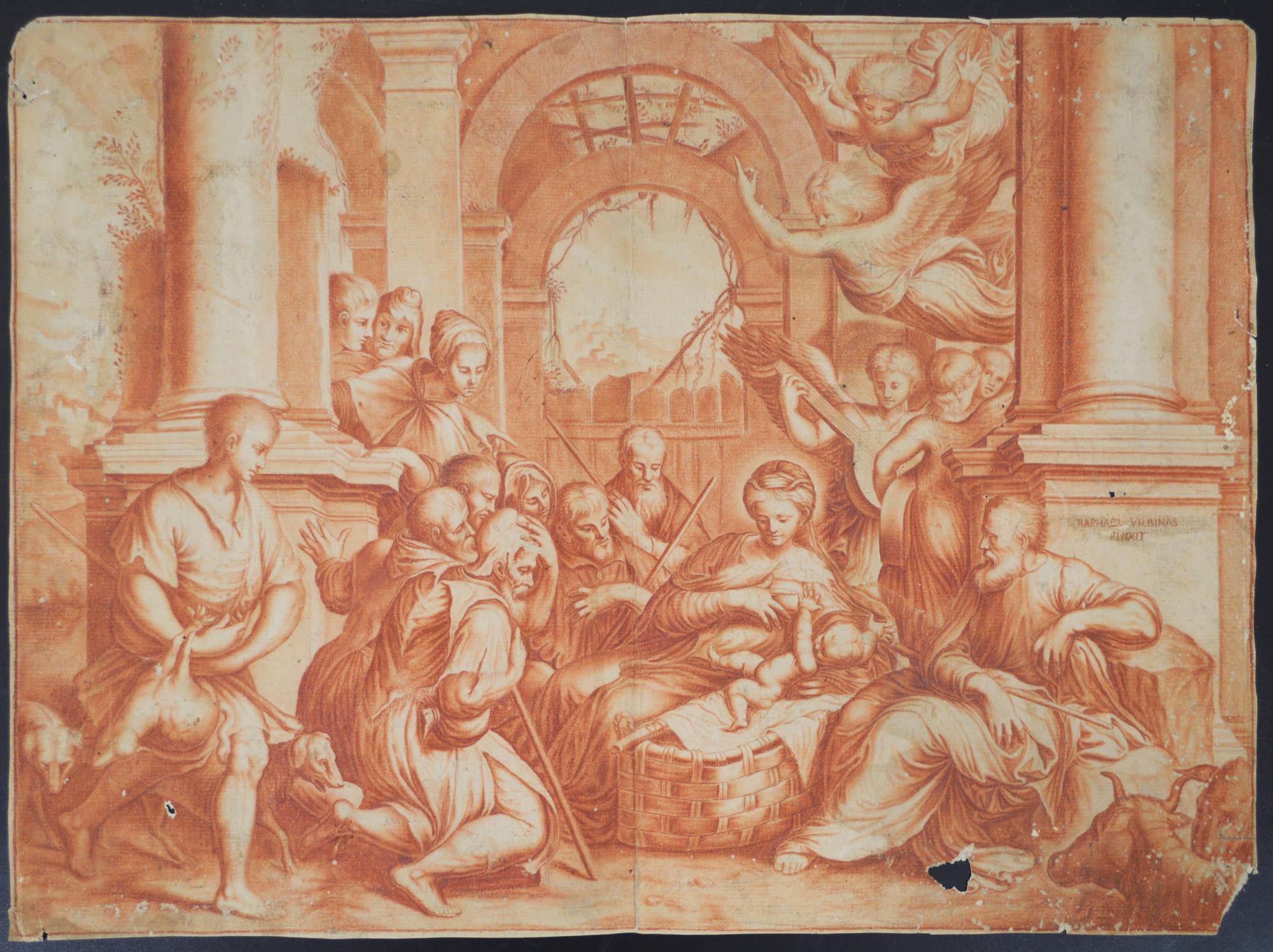Scuola Emiliana del XVII secolo ADORAZIONE DEI PASTORI sanguigna su carta, cm...