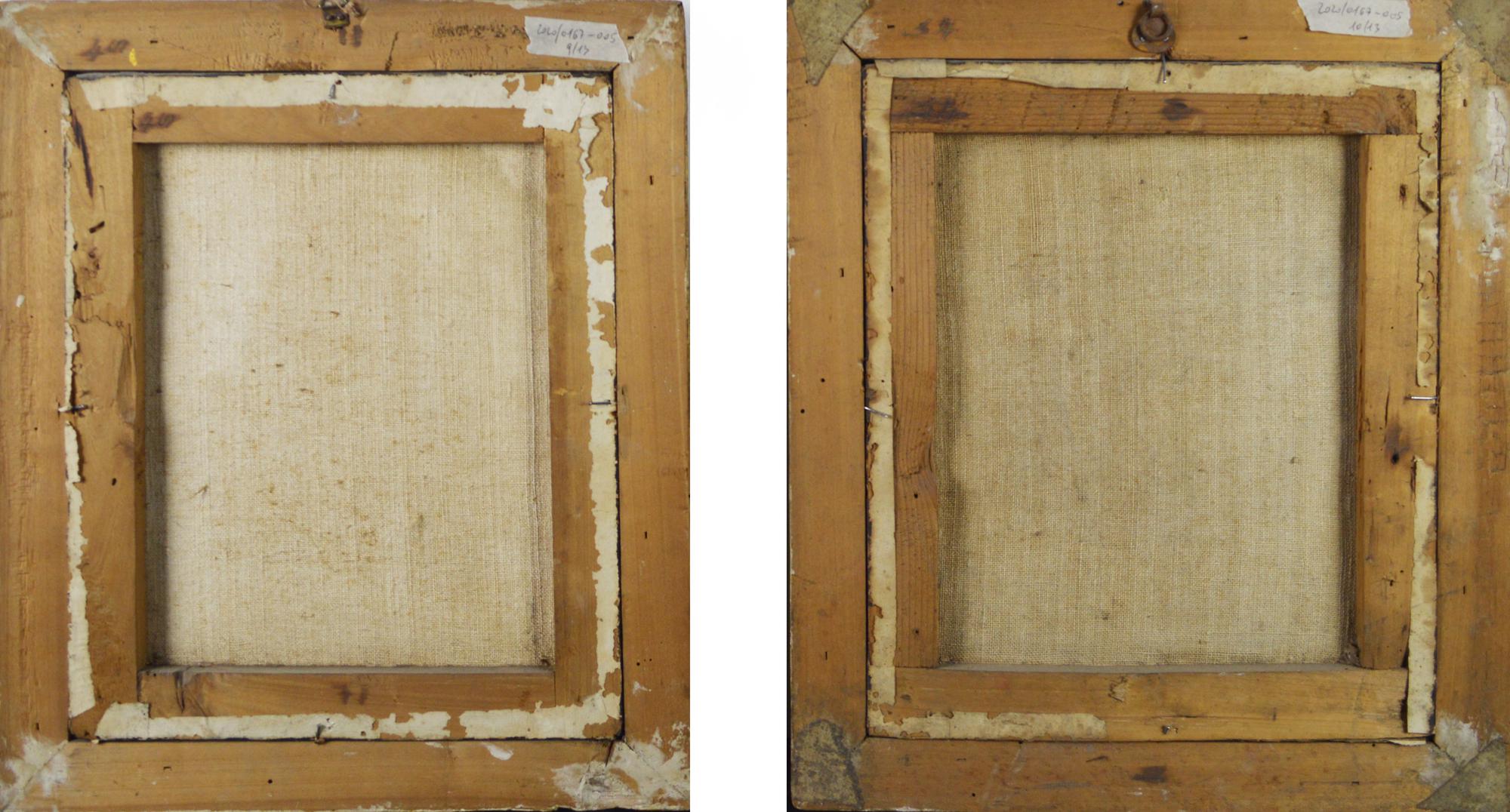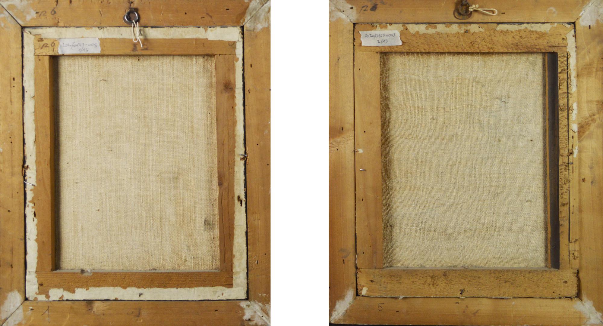 incisioni a bulino applicate su tela, cm 33,5x27,5 ciascuna