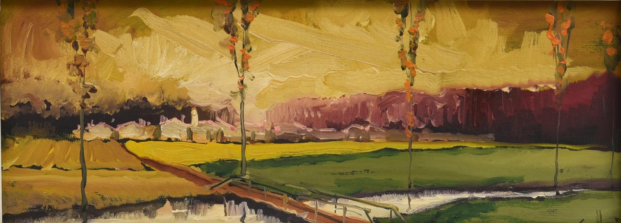 Narcisio Scotti CAMPI olio su cartone telato, cm 15x40 firma
