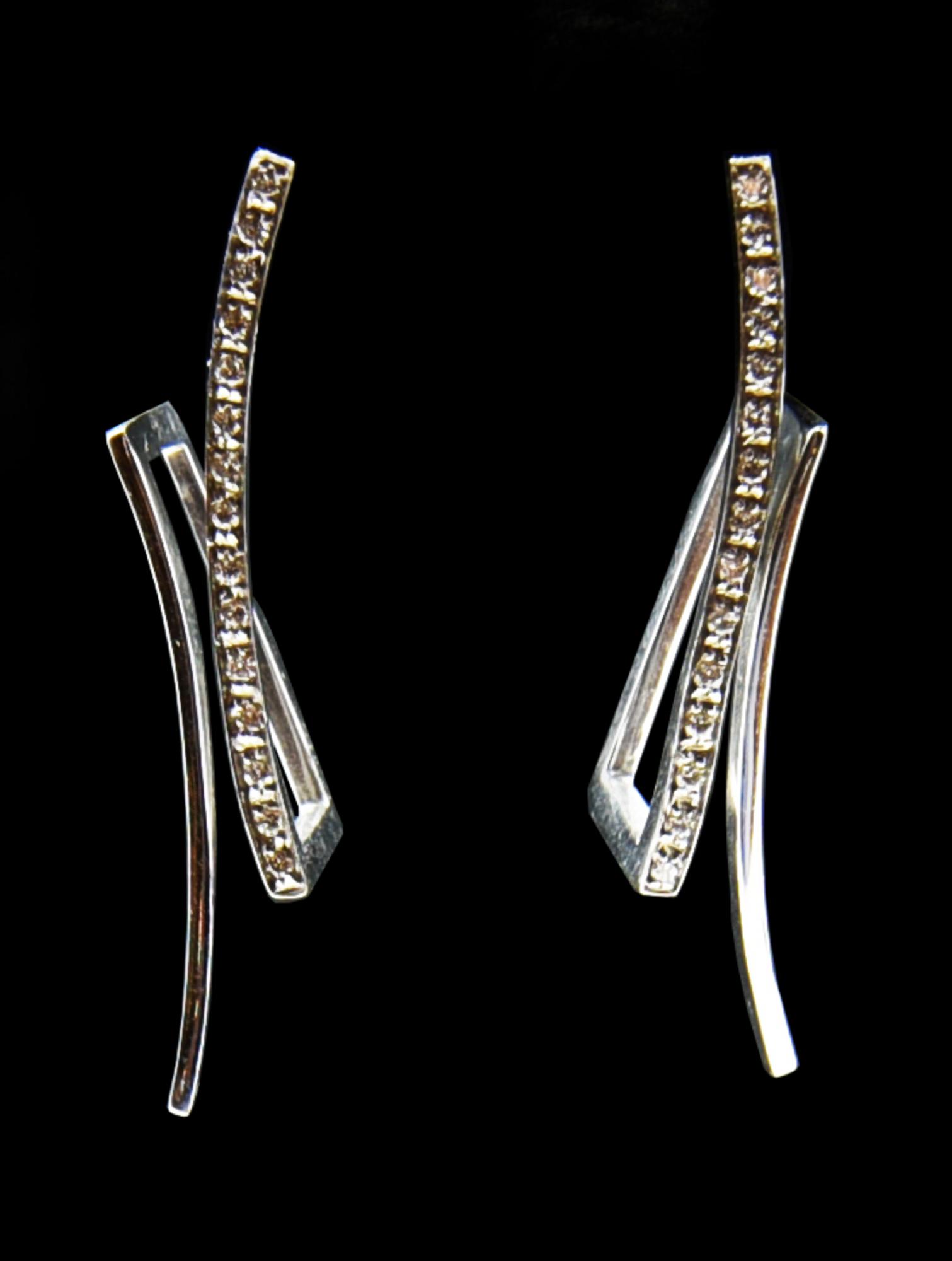 in oro bianco 18kt di forma geometrica e decotari con diamanti, per complessivo 0,20 ct circa.