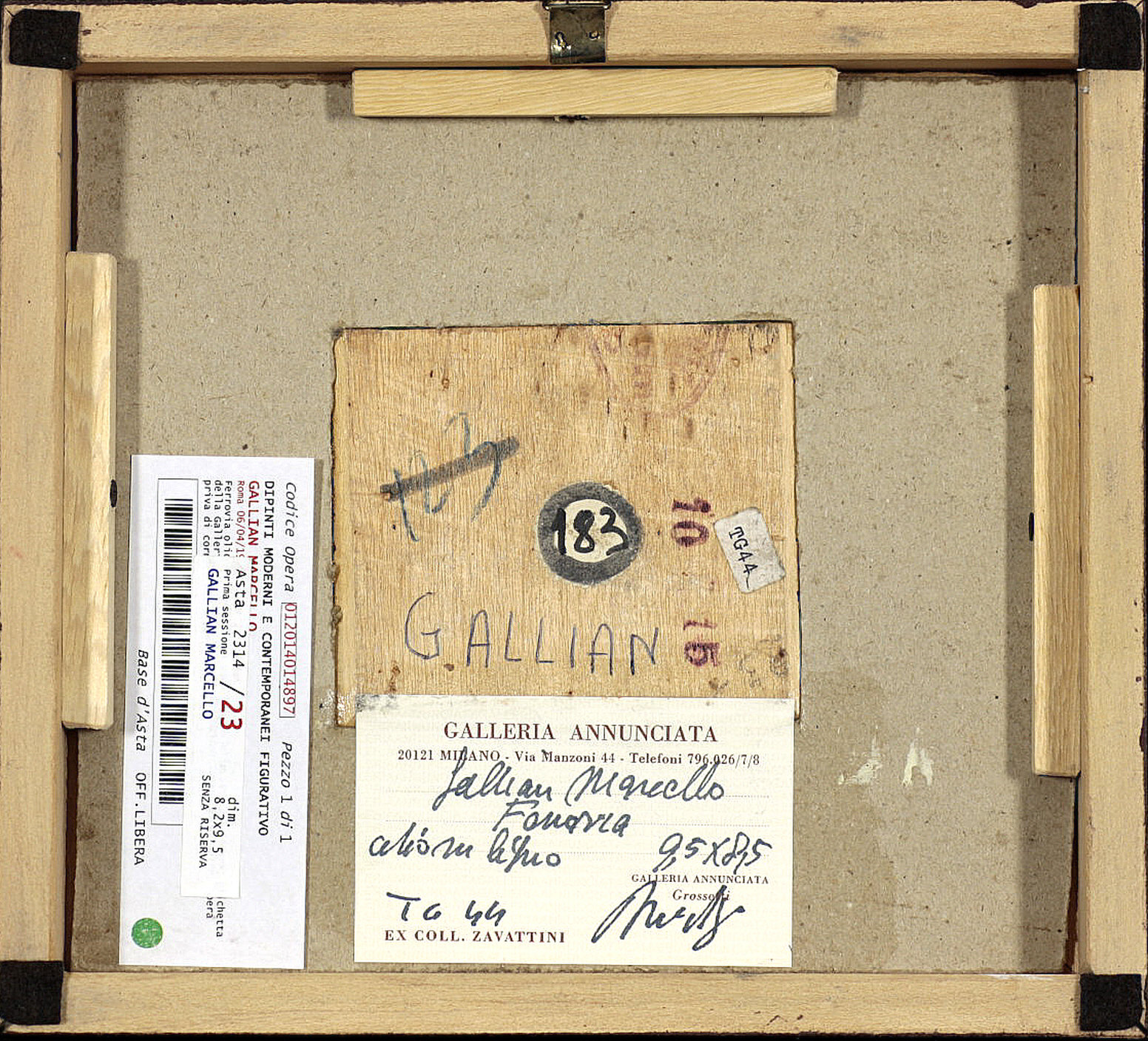 Etichetta della Galleria d'arte Annunciata, Milano sul retro
