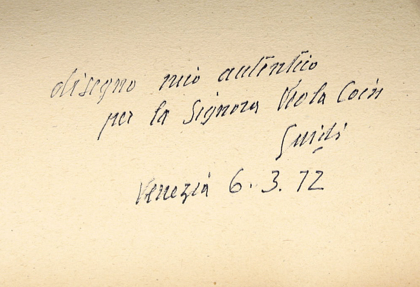 Provenienza collezione Aristide Coin. Dedica alla Sig. Viola Coin sul retro