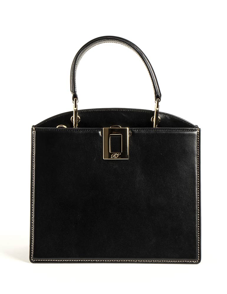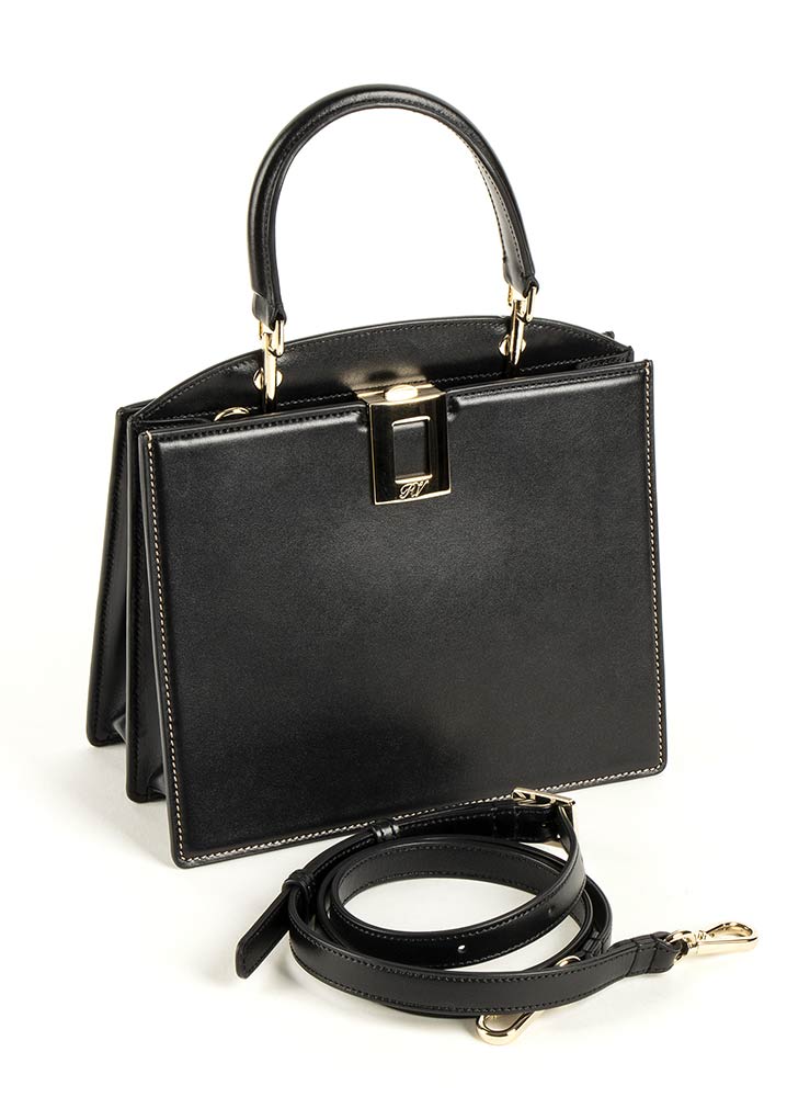 Borsa in pelle nera, tracolla, minuteria dorata, scatola originale, dust bag