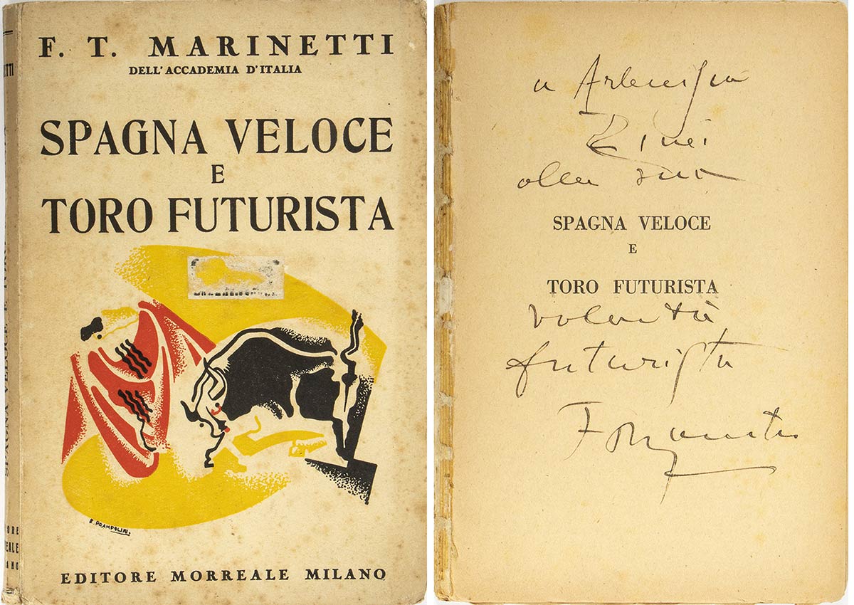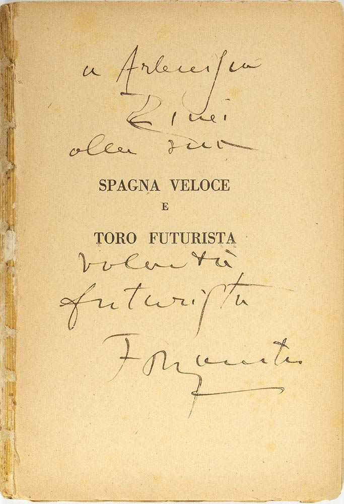F.T.Marinetti (1876-1944), SPAGNA VELOCE E TORO FUTURISTA , con dedica autografa