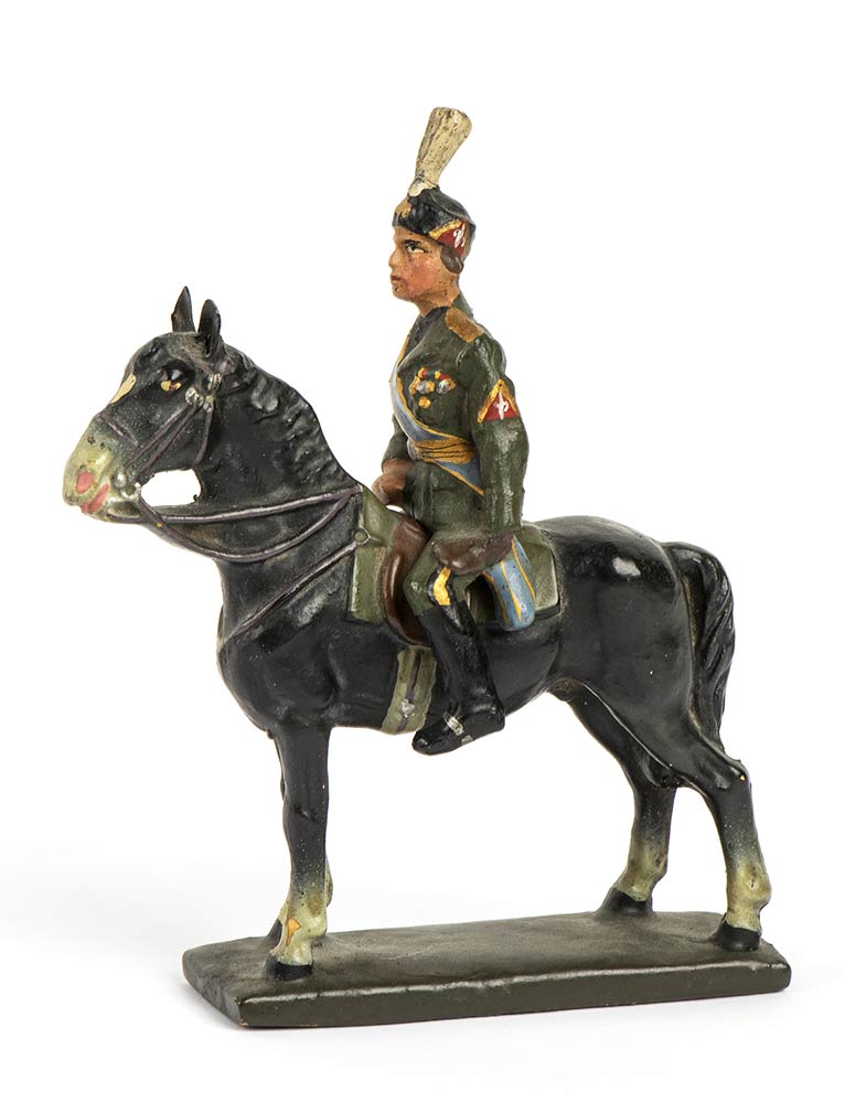 Anteguerra, misura standard in scala con gli altri soldatini da cm 7,5 / 8 , altezza a cavallo circa cm.13. In buone condizioni con eventuali segni d'uso ed accettabili mancanze.