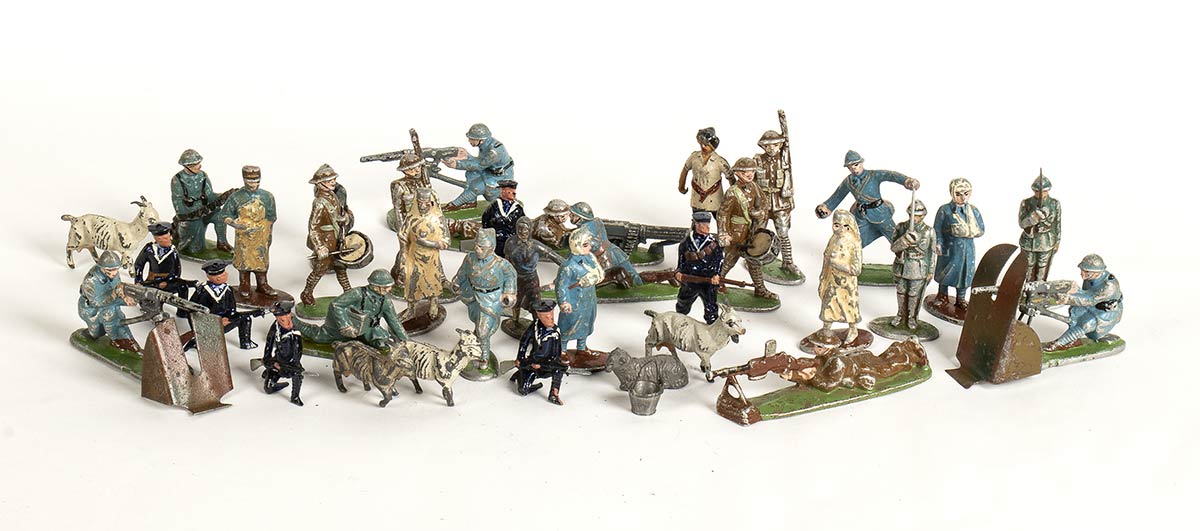 Lotto di circa 33 soggetti vari, in lega metallica. Mancanze, evidenti tracce d'uso, condizioni discrete