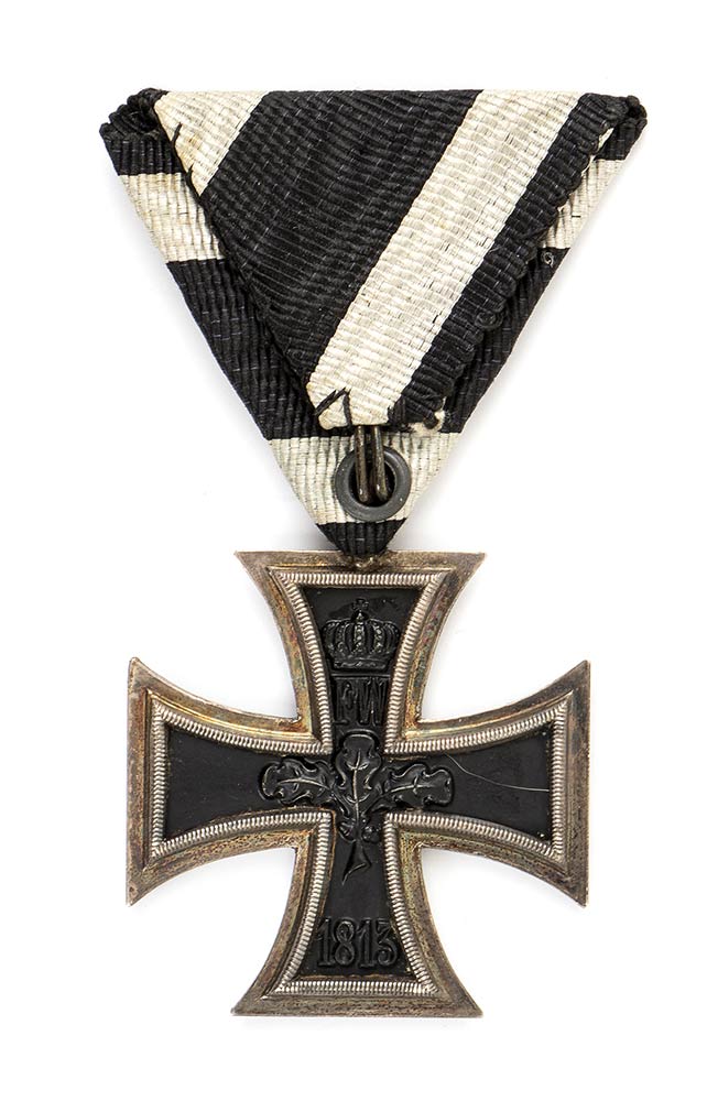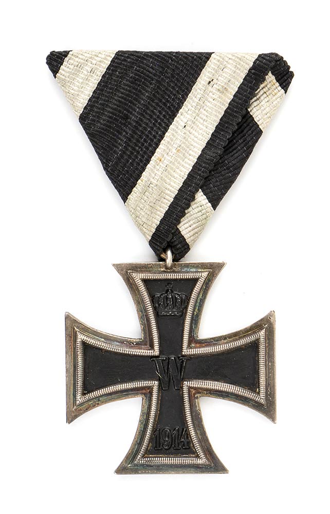 Croce di ferro di II classe con nastrino coevo montato all'austriaca, buone condizioni