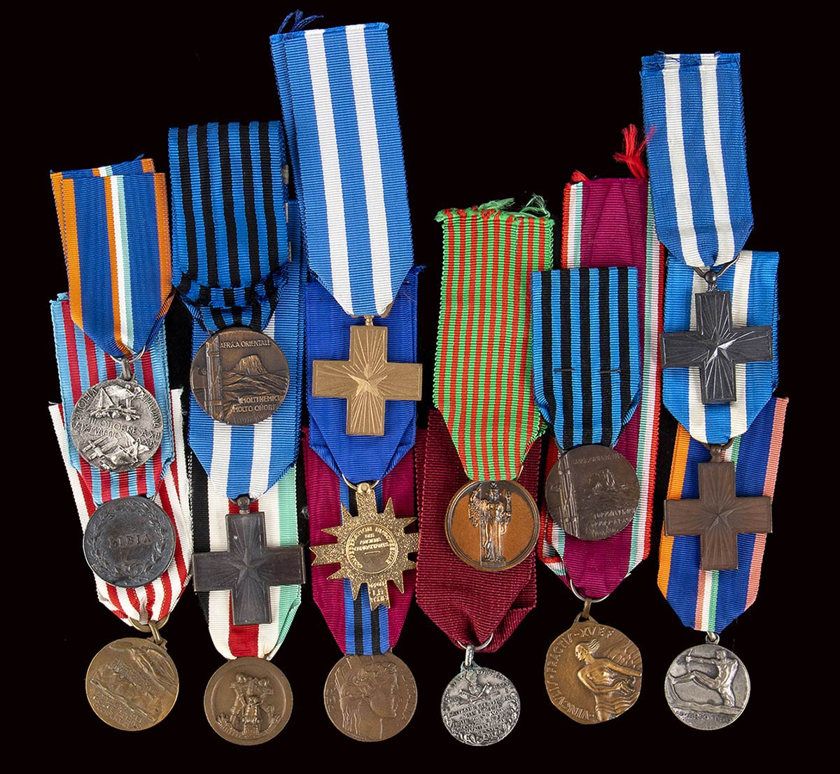 Lotto di sedici medagluie varie tra cuio spiccano per interesse la medaglia in argento dell’Armata del Po, la medaglia commemorativa della guerra d’Etiopia del XV battaglione radio avanzate del Genio, forze armate dell’Arar e medaglia del fronte alpino occidentale.