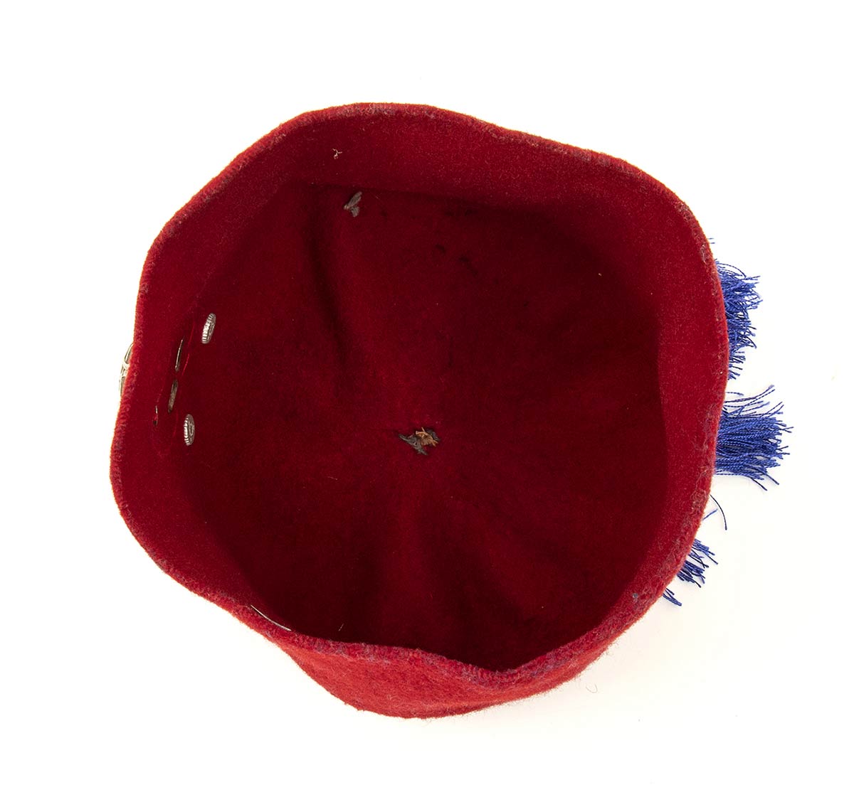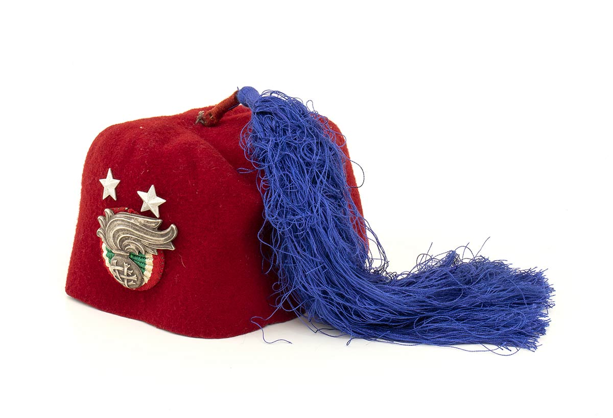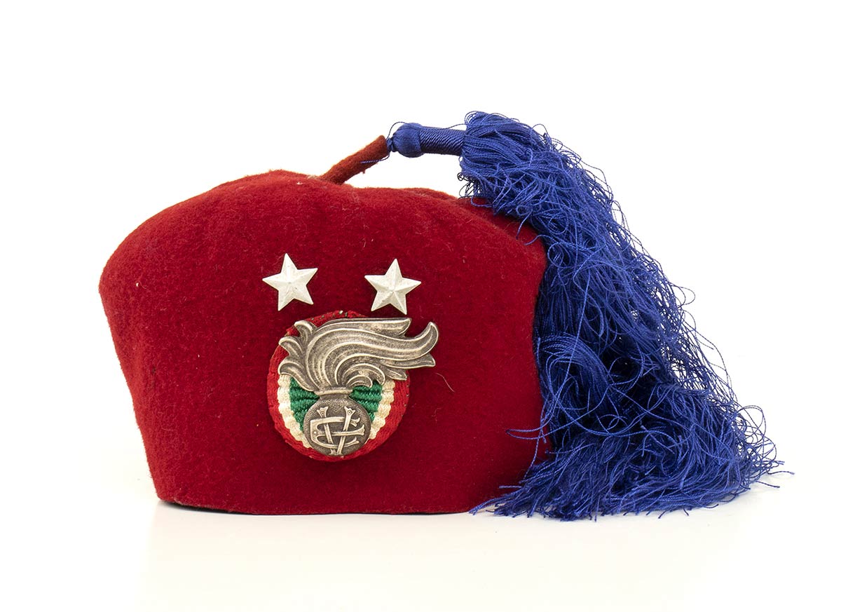 tipico copricapo dei carabinieri indigeni in Libia, fregio metallico su coccarda e fiocco azzurro savoia, ottimo stato