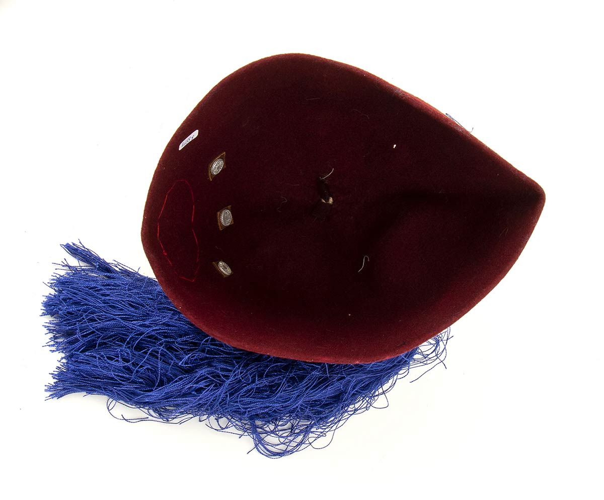 feltro rosso scuro con fiocco azzurro e fregio dei cavalleggeri siu coccarda, ottimo stato