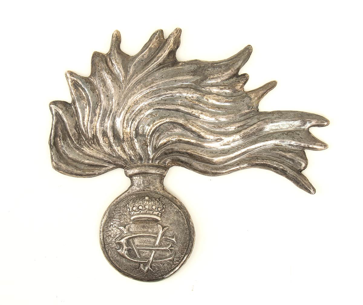 Grande fiamma in metallo sbalzato dei Reali Carabinieri, buono stato 20X25 cm