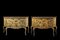 Coppia di commodes in legno laccato a foglie e fiori nei toni del verde, fianchi con figure in un paesaggio. Due cassetti sul fronte mosso, gambe mosse, piedi a ricciolo. Piano sagomato in legno a finto marmo. Piemonte, secolo XVIII (cm 126x84x43) (difetti, restauri, riprese alla decorazione pittorica)