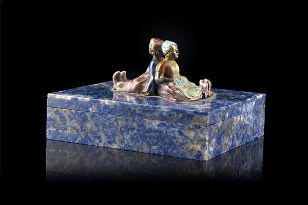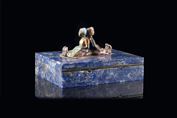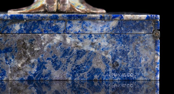 Alfredo Ravasco Scatola in lapislazzulo, il coperchio sormontato da due fanciull