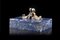Scatola in lapislazzulo, il coperchio sormontato da due fanciulli in costume olandese, firmata in maiuscolo sul fianco destro (cm 11x7x9)