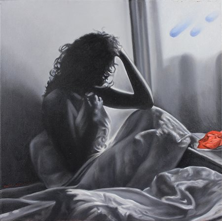 D'Aquino Gaetano Attesa olio su tela, cm 50x50 firmato in basso a sinistra, certificato di autenticità firmato dall'artista