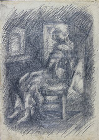 Erba Carlo Donna seduta in un interno, (1908) matita grassa nera su carta, cm...