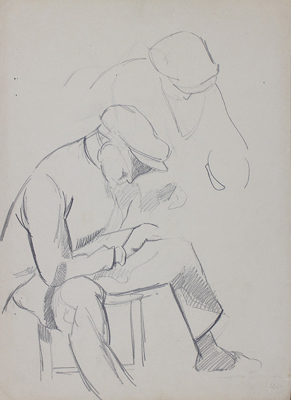 Erba Carlo Studi di uomo seduto, (1914) matita su carta, cm 36,5x26,5 timbro tondo a secco Eredi Carlo Erba in basso a destra, certificato archivio Carlo Erba Roma, pubblicato su catalogo della mostra "Carlo Erba 100 disegni" Roma pp.33, 109, N. 86