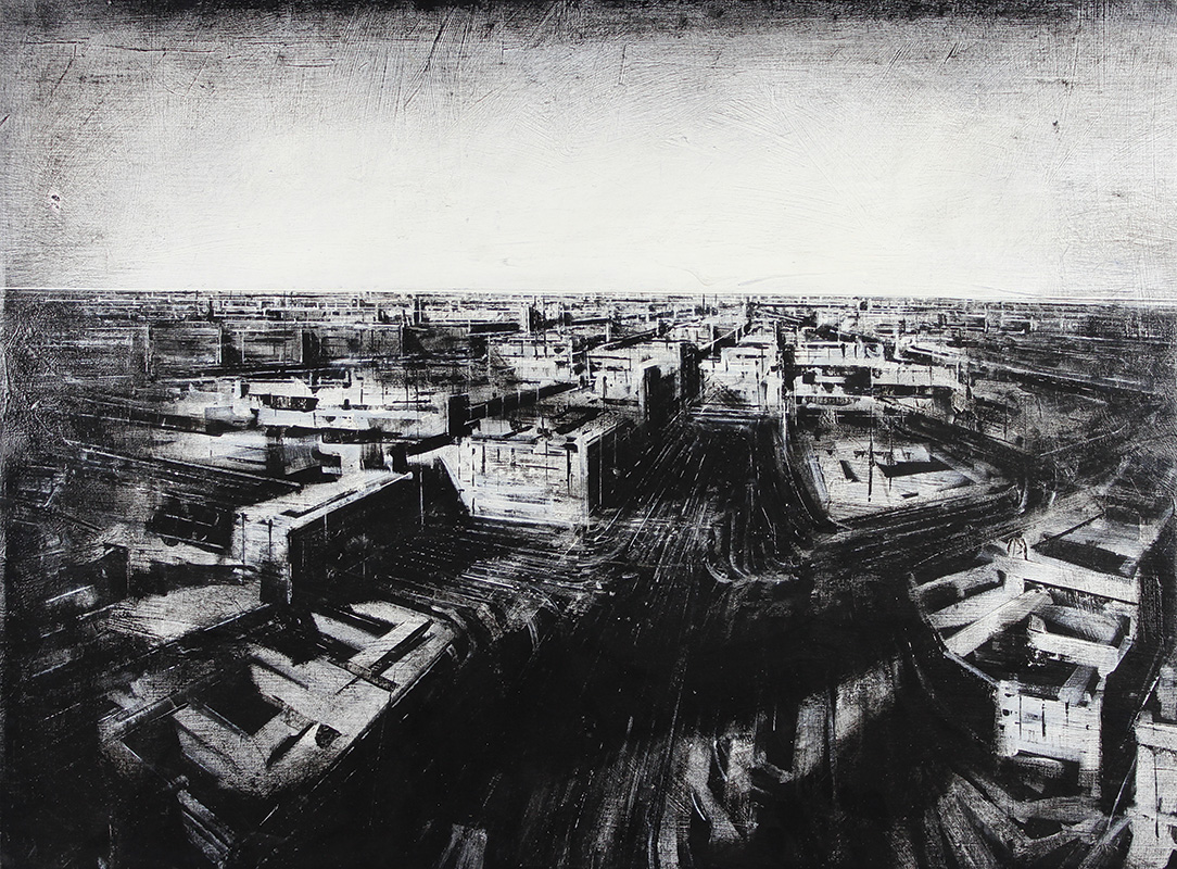 Guaitamacchi Jonathan Central View, 2004 tecnica mista su carta intelata, cm. 60x80 firmata, datata e intitolata al retro, autentica dell'artista su fotografia, certificato di autenticità Arte Leader - Cinisello al retro
