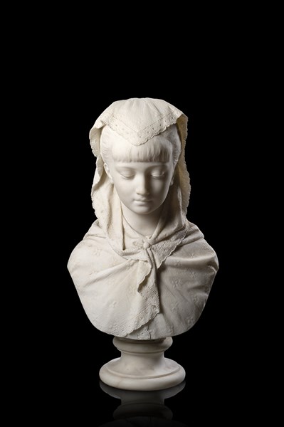 Flaminio Lucca "La modestia" 1884, busto in marmo bianco (h. cm 63) Firmato, loc