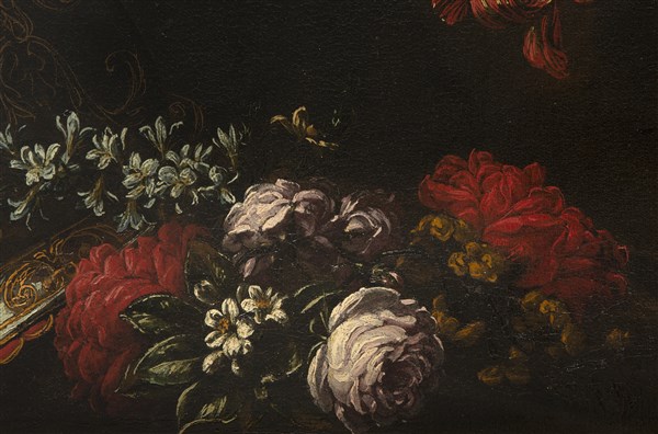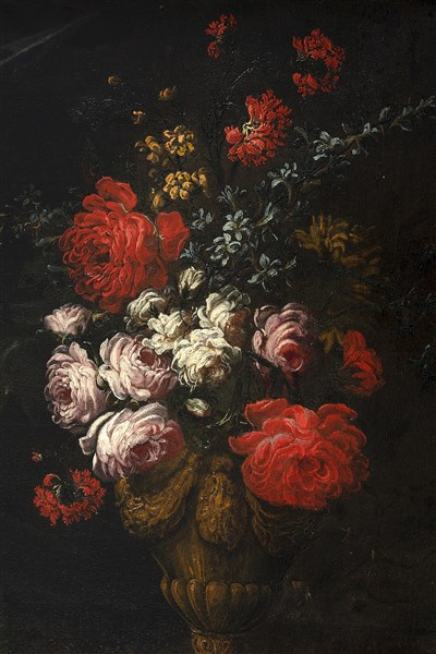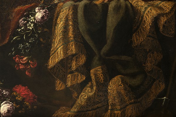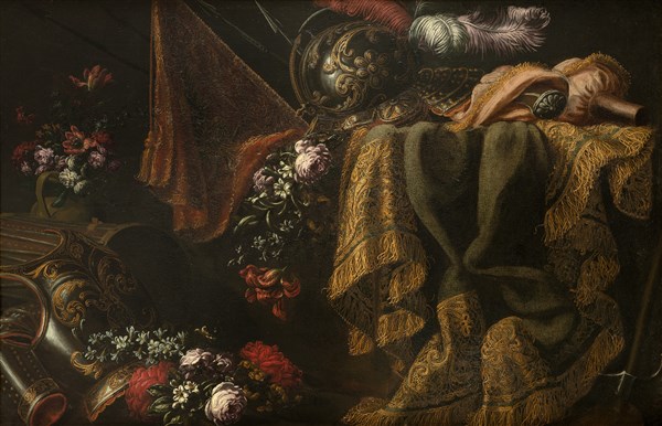 Natura morta con tappeto, stendardo, armatura e fiori; Natura morta con tappeto, armatura, tromba, tamburo e vaso di fiori
