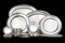 Servizio in argento composto da due pesciere, due piatti tondi, un vassoio tondo, dodici piattini, dodici piattini da pane, dodici lavadita con piattini. Titolo 800. Argentiere Nicoletti (g 12000)